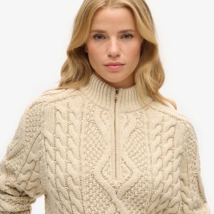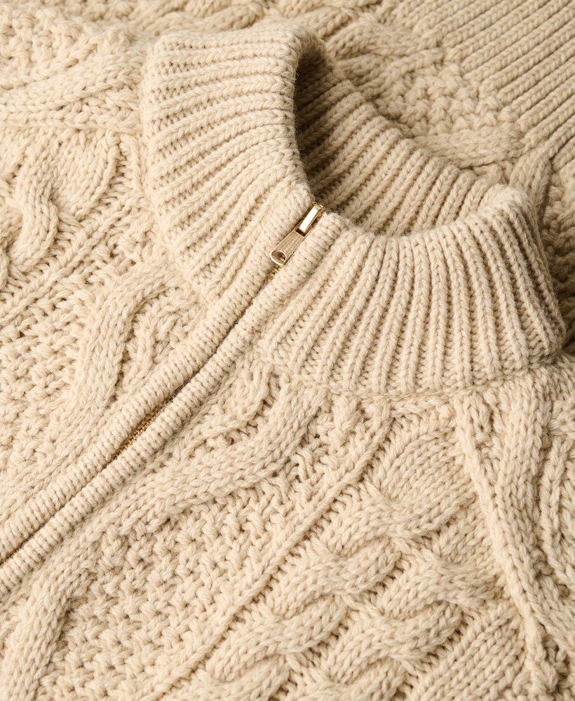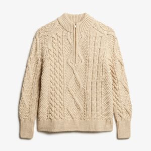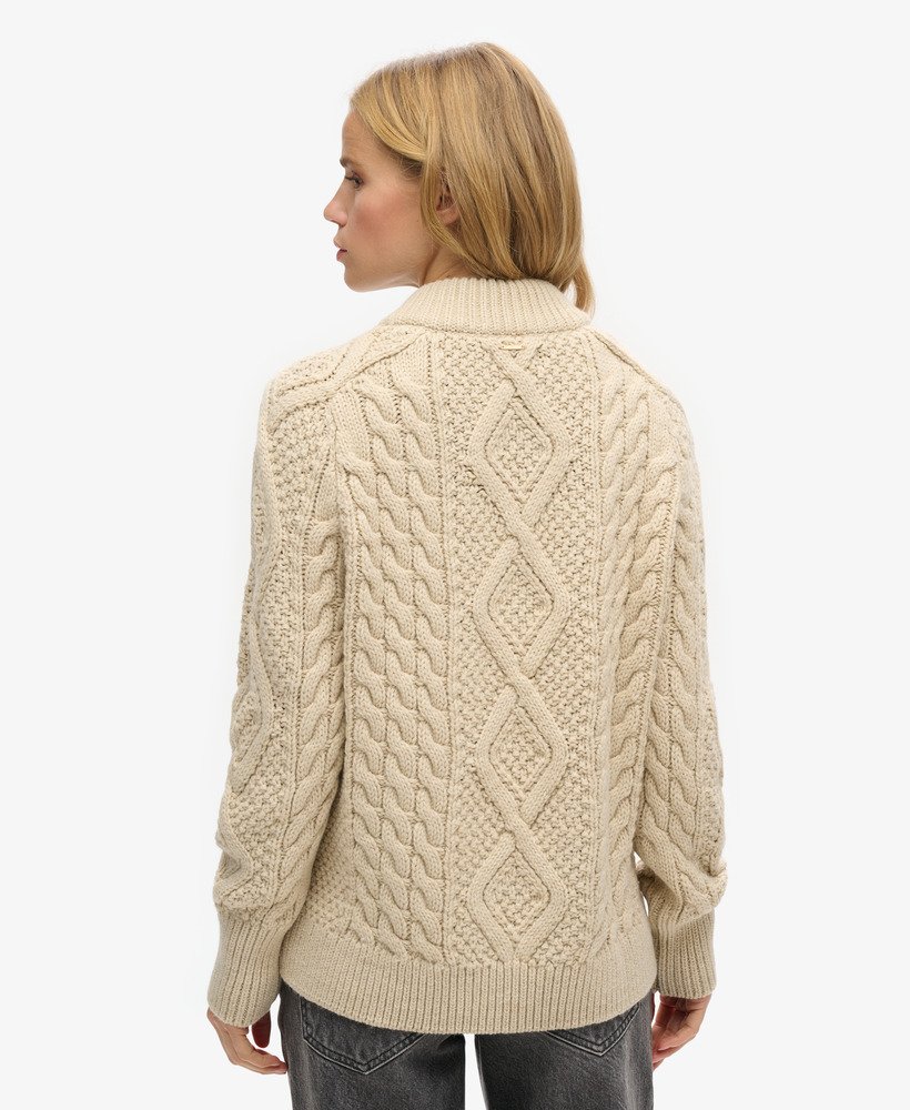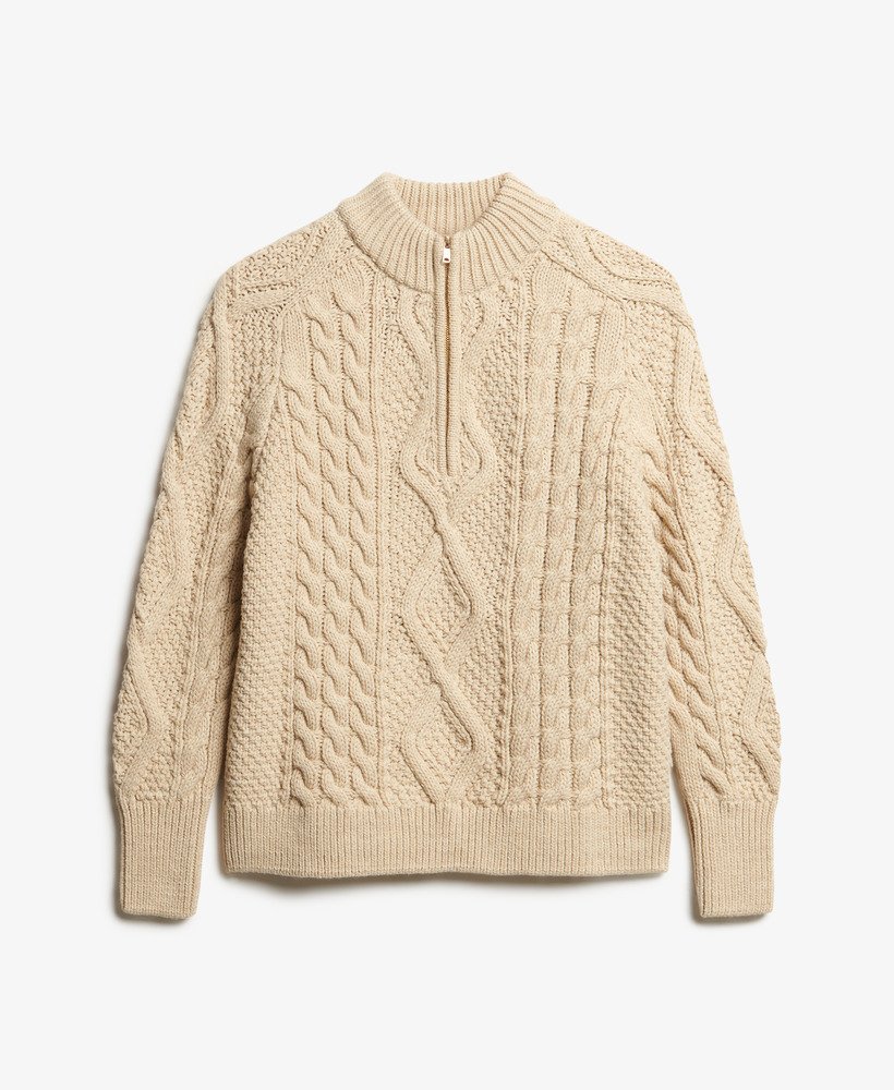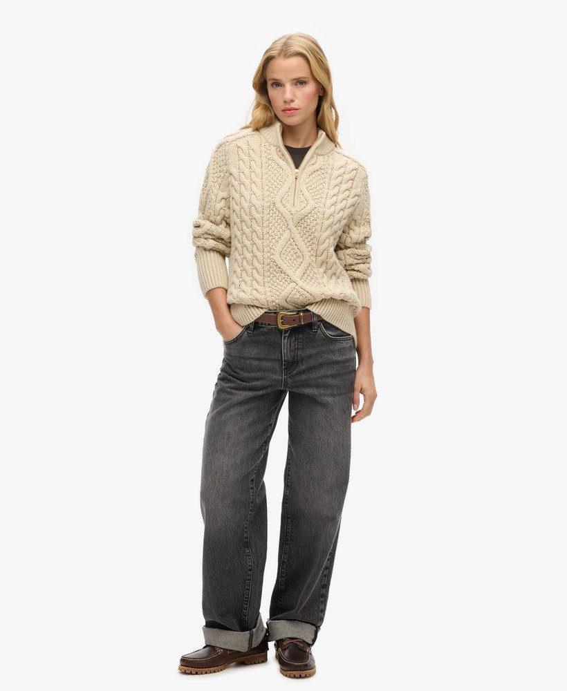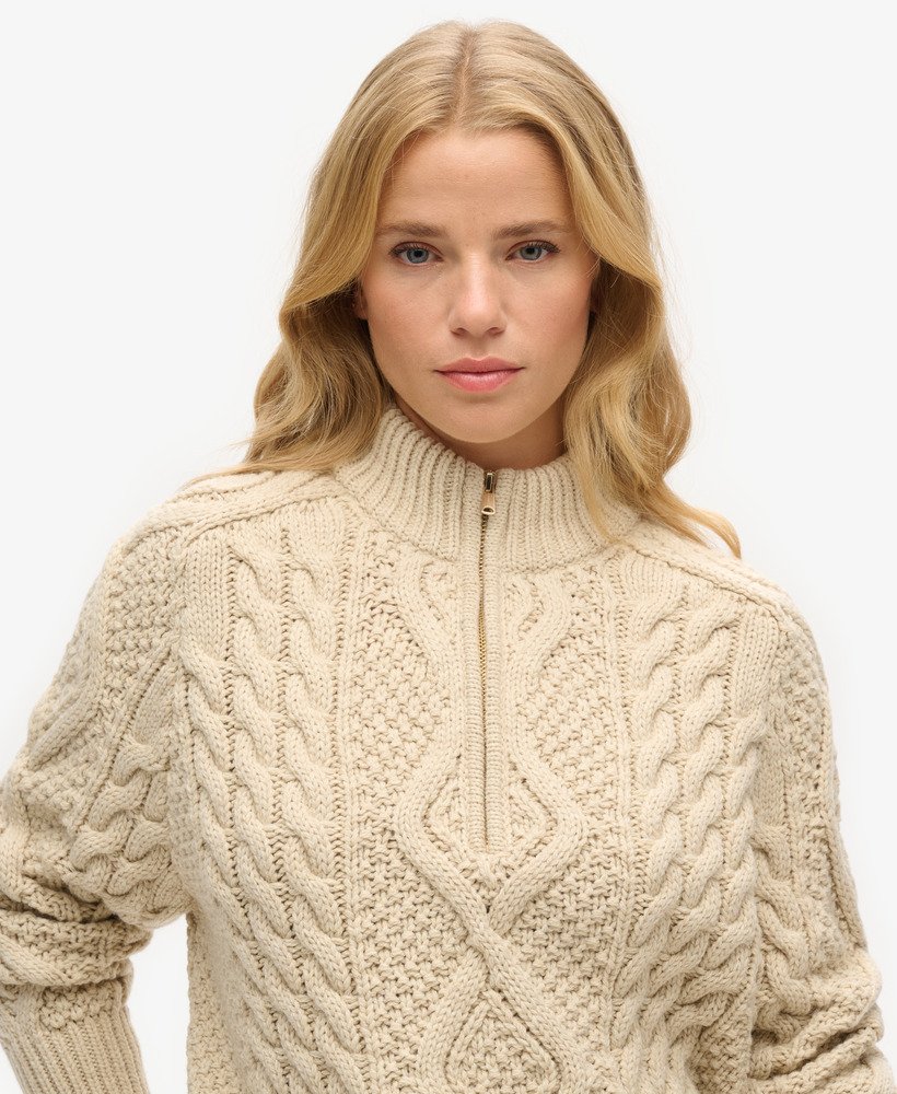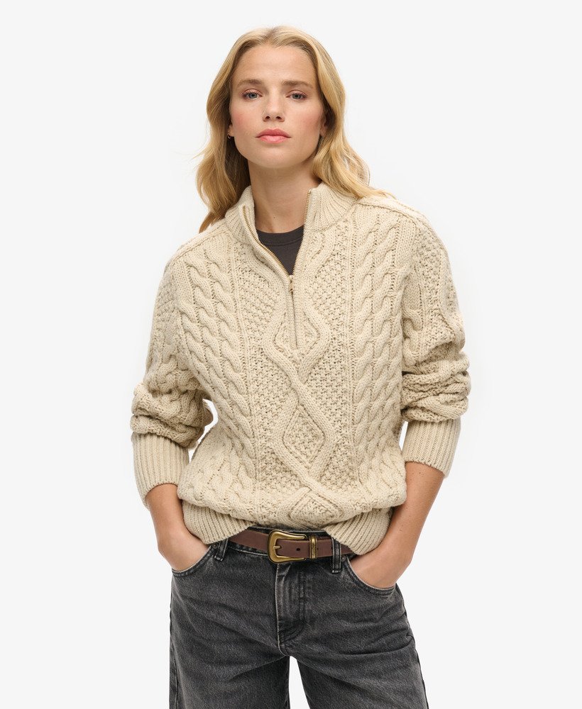 A cosy, stylish addition to your wardrobe rotation this season. Our Aran Cable Knit Half Zip has been curated with elegant dropped sleeves and the perfect relaxed fit; these elements create a gorgeous silhouette that’s effortless to style however you like to suit you.