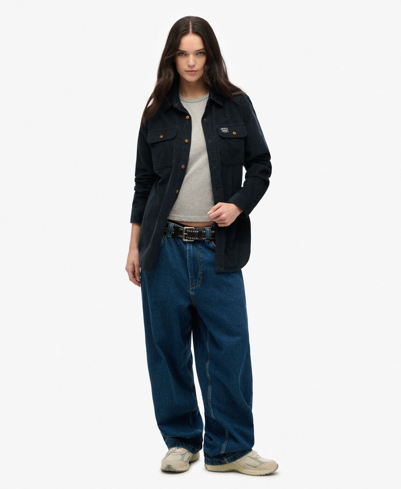 - One single chest pocket with an embroidered badge