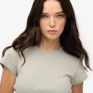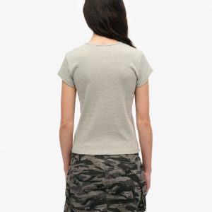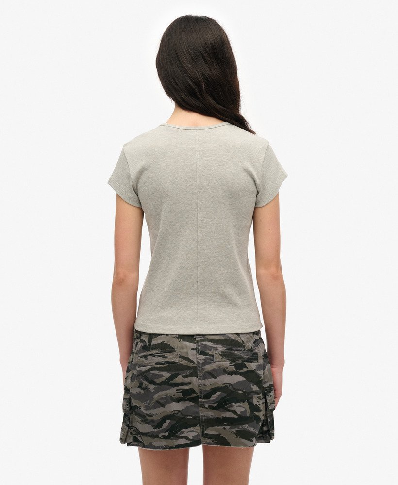 - Crew neckline with capped sleeves and ribbed trims