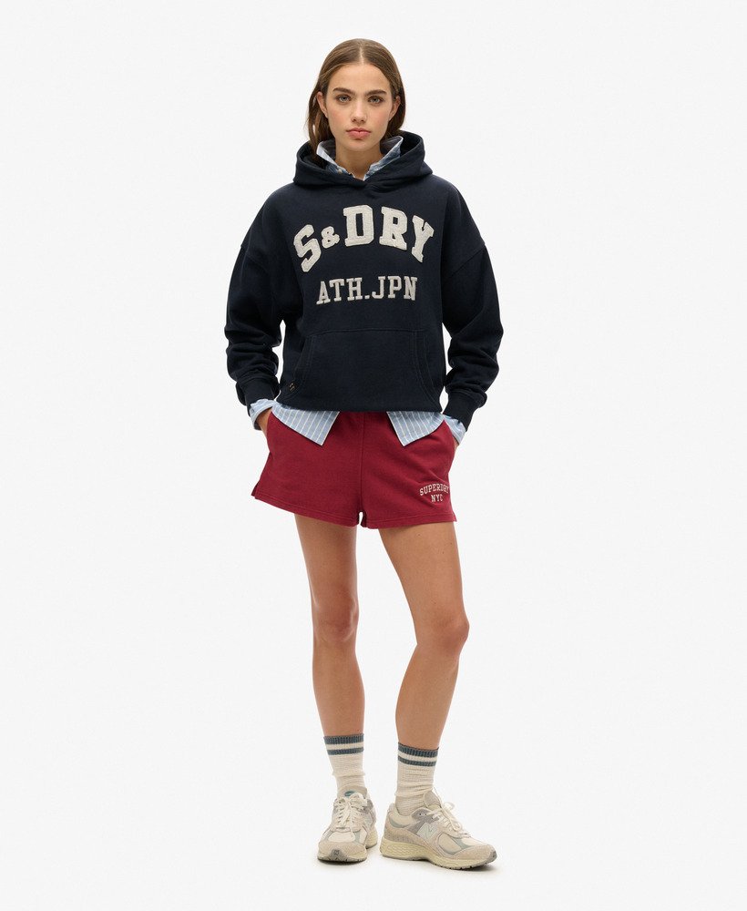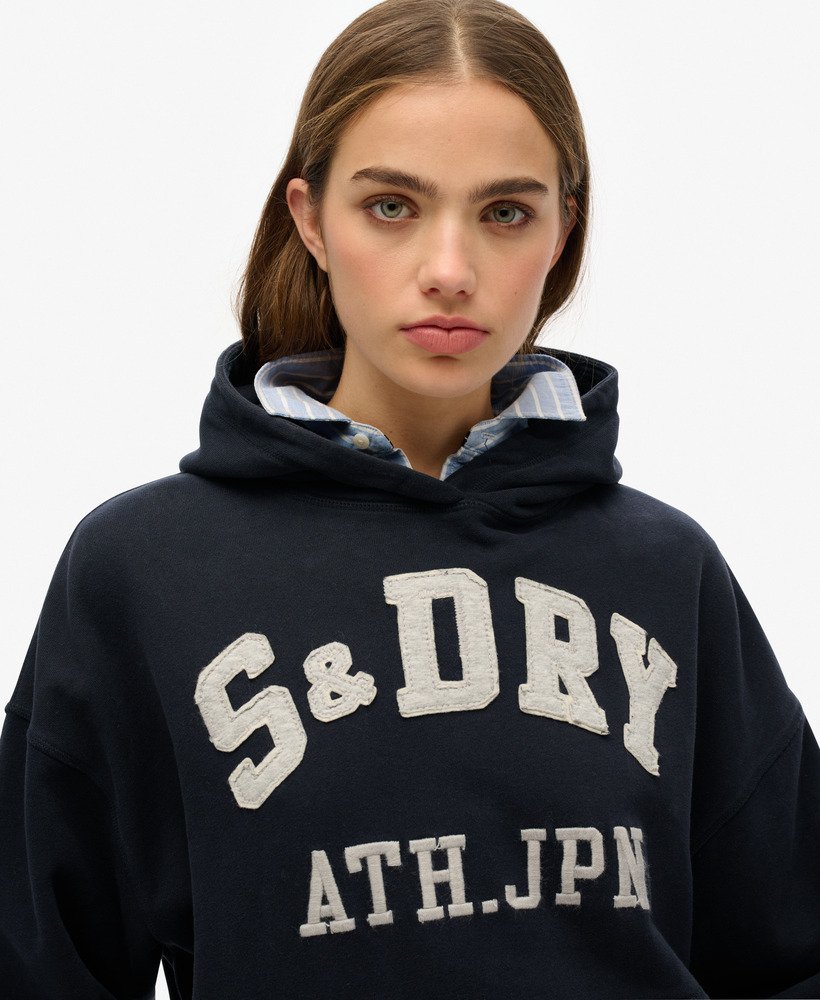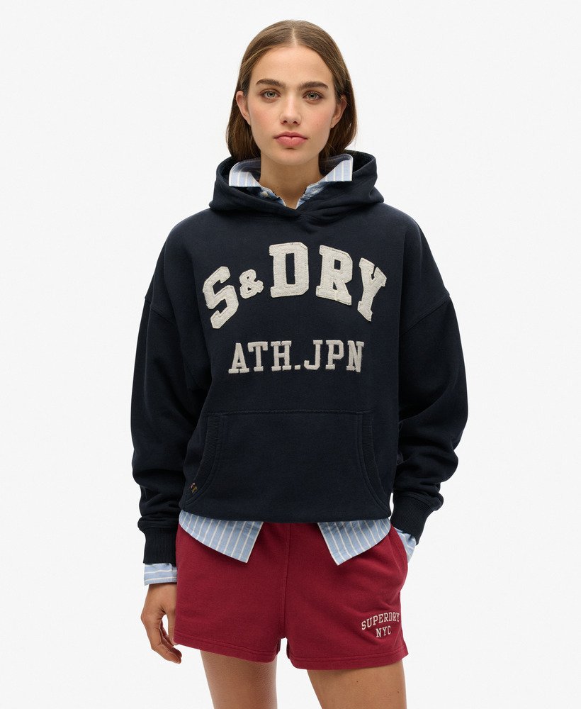 Part of our signature collection, the Athletic Essentials Applique Relaxed Hoodie has been expertly curated with vintage-inspired applique text on the chest and gorgeous brushed lining, comfort and style go hand-in-hand with this hoodie. Designed with dropped sleeves and an oversized fit, the silhouette is trendy and chic, and we’ve made it effortless to layer and style throughout the changing seasons.
