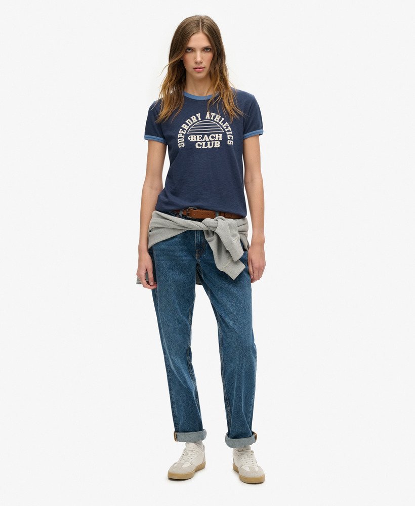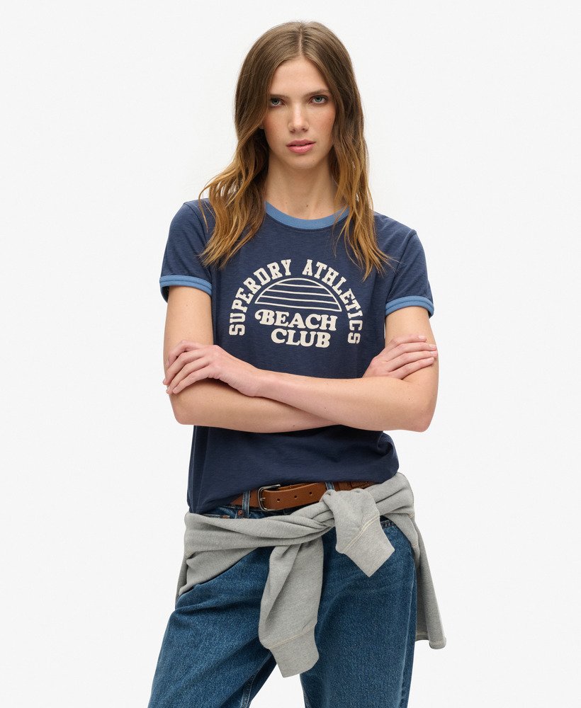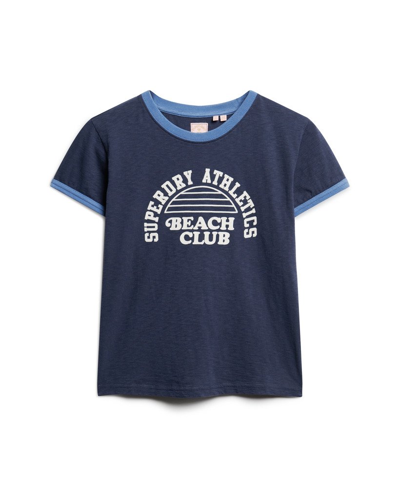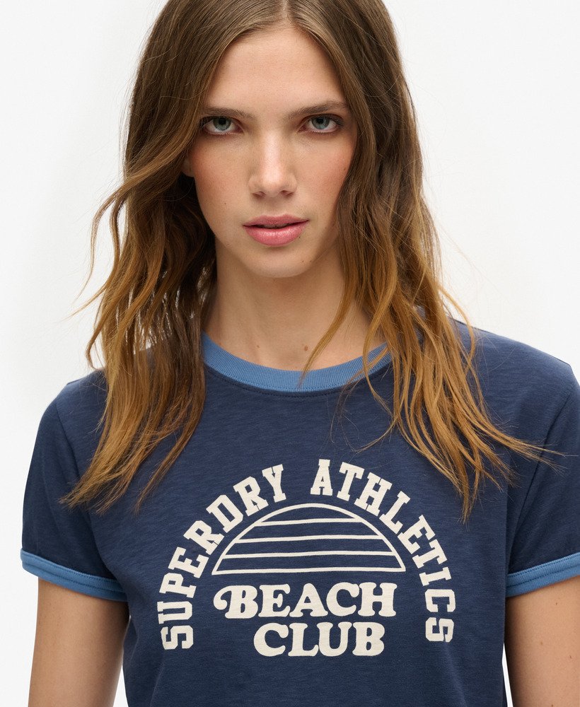 Bring those beach vibes into your every day with the Athletic Essentials Beach Graphic Fitted Ringer T-Shirt. The ringer design brings a sporty edge to your look while the graphic print evokes thoughts of times well spent. An ideal companion to pair with athletic shorts to really bring that beach sports look, you can team this tee to bring out your personal style.