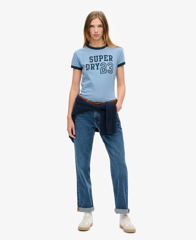 Elevate your casualwear this season by embracing a retro vibe that’s sure to give your chilled-out looks an edge. The Athletic Essentials Ringer Fitted T-Shirt is a true 90s-style hero, featuring old-school graphics and a ringer design for a vintage sporty aesthetic. An effortless statement piece or a layering legend: the choice is yours.