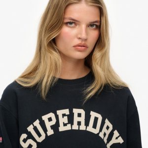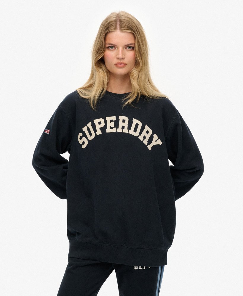 Stay warm and cosy this season with our Athletic Essential Slouchy Sweatshirt. Effortlessly simple, this piece gives a nod to Americana varsity stylings with its sewn in premium metal American flag tab and bold front letterings, while also providing a more casual fit to suit your everyday and fit comfortably. For a way to casually lounge at home with a coffee on a cold morning, while not sacrificing on your distinctive style, look no further.