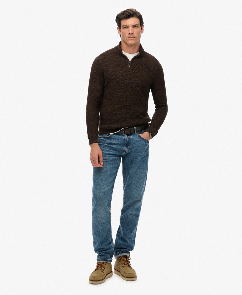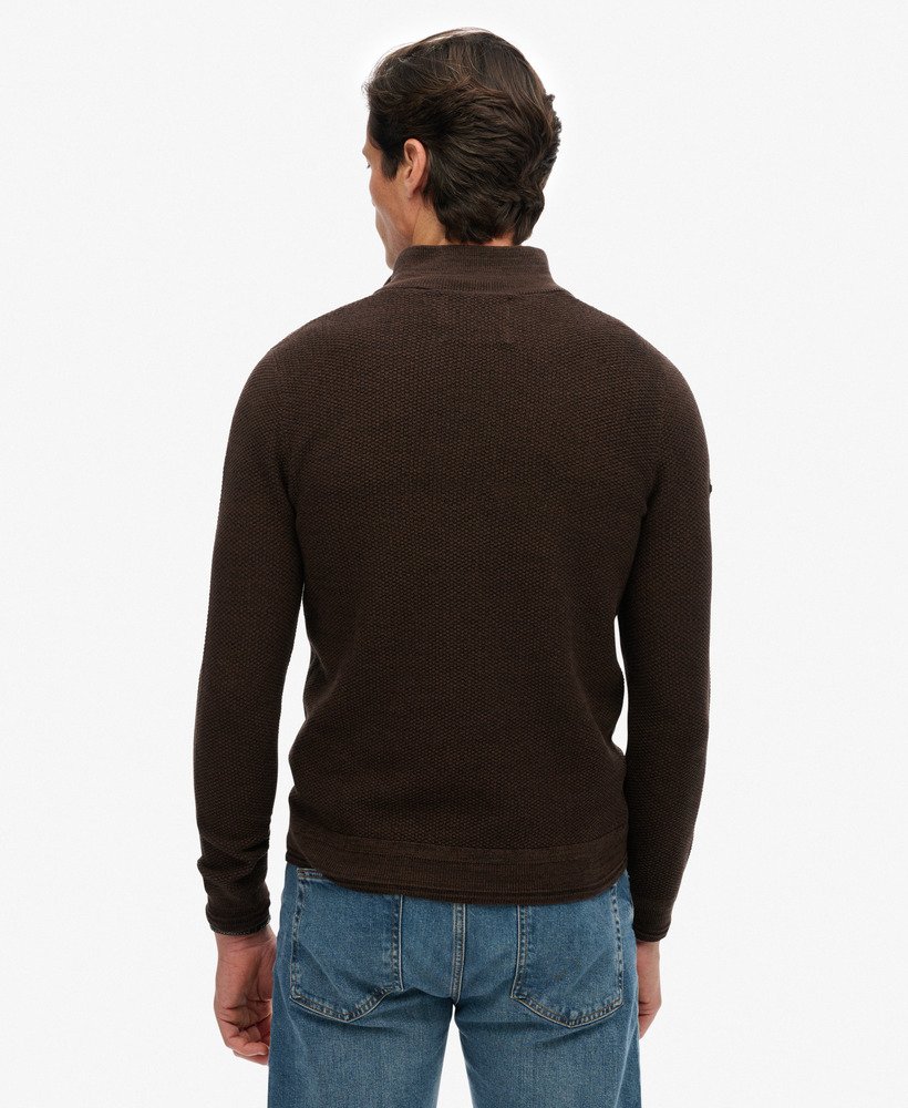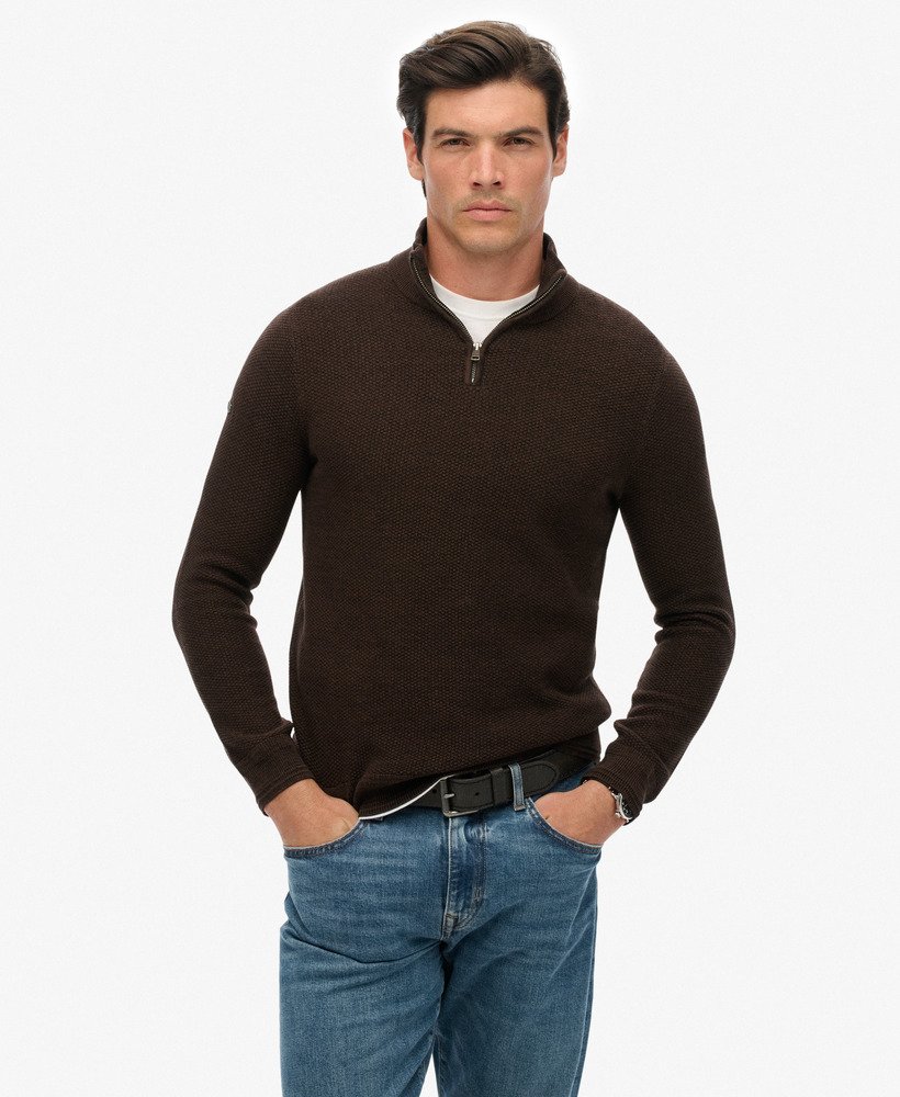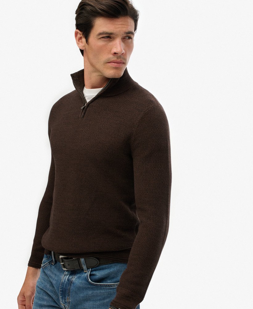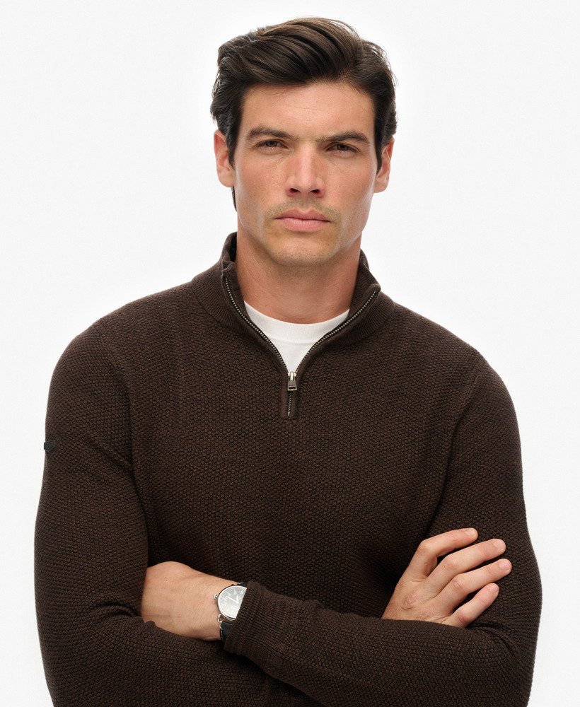 The perfect versatile piece that can be effortlessly styled with your distinctive wardrobe. The Cotton Texture Half-Zip Jumper has been expertly curated with immense detail to accompany you with the cold weather rotation this season. Imbued with that classic Superdry quality, this jumper ensures you can layer up with your own authentic sense of vintage style.
