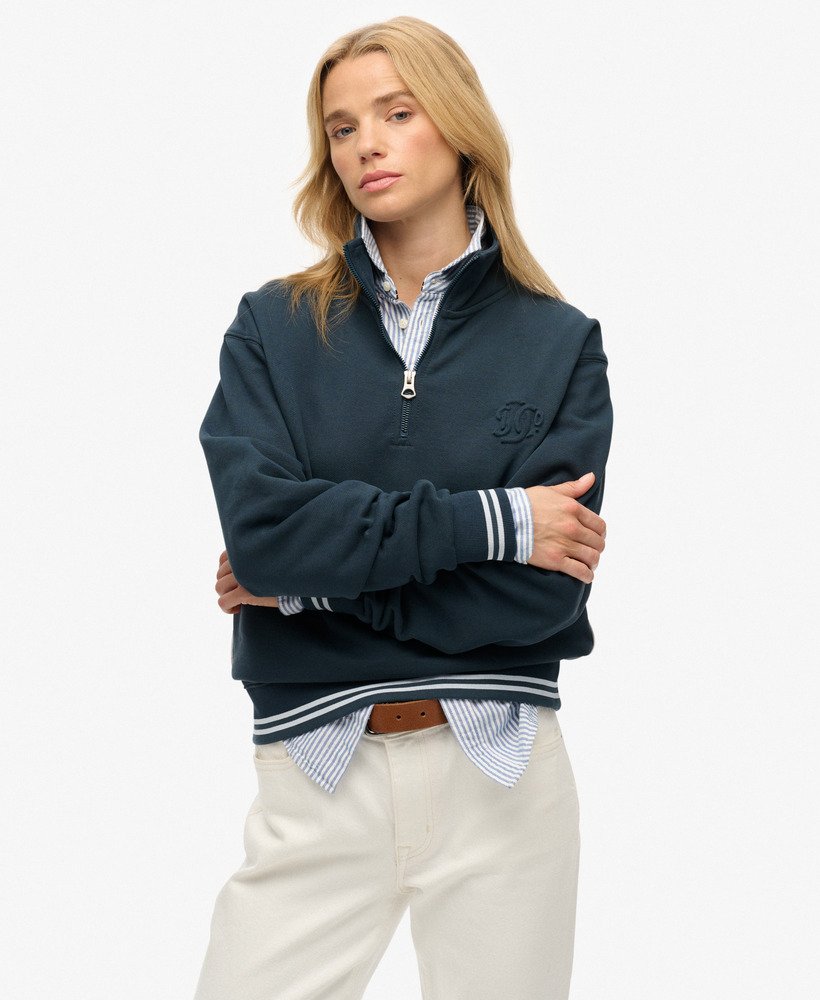 The Country Club Embossed Half-Zip Jumper is an elevated essential. Curated with an embossed logo on the chest and cosy loose fit, the silhouette is trendy, while the half-zip fastening gives it a luxurious feel.