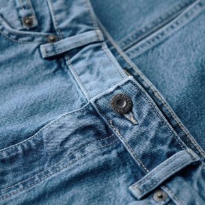 - Zip and button fastening on the waistline with belt loops