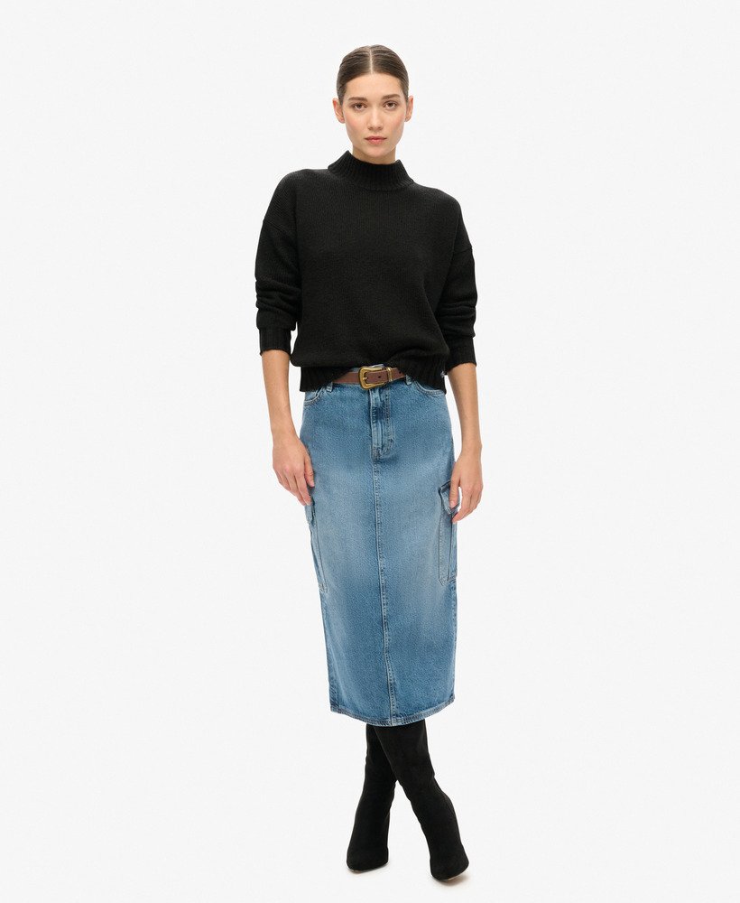 A staple in any fashion-obsessed wardrobe. The Denim Cargo Pocket Midi Skirt has been crafted with versatility and style in mind. Crafted with multiple pockets with a utility vibe throughout, it’s the perfect seasonal switch-up for an effortlessly stylish outfit, all year long.