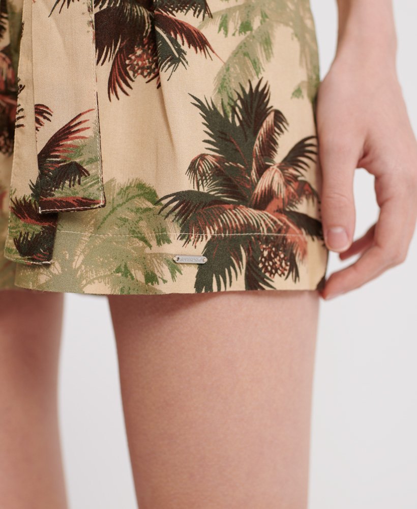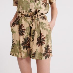 Superdry women’s Desert stripe shorts. These shorts feature a zip and button fastening, a tie up belt, two front pockets and two faux pockets on the back. Finished with an all over stripe design and a Superdry metal tab towards the hemline.
