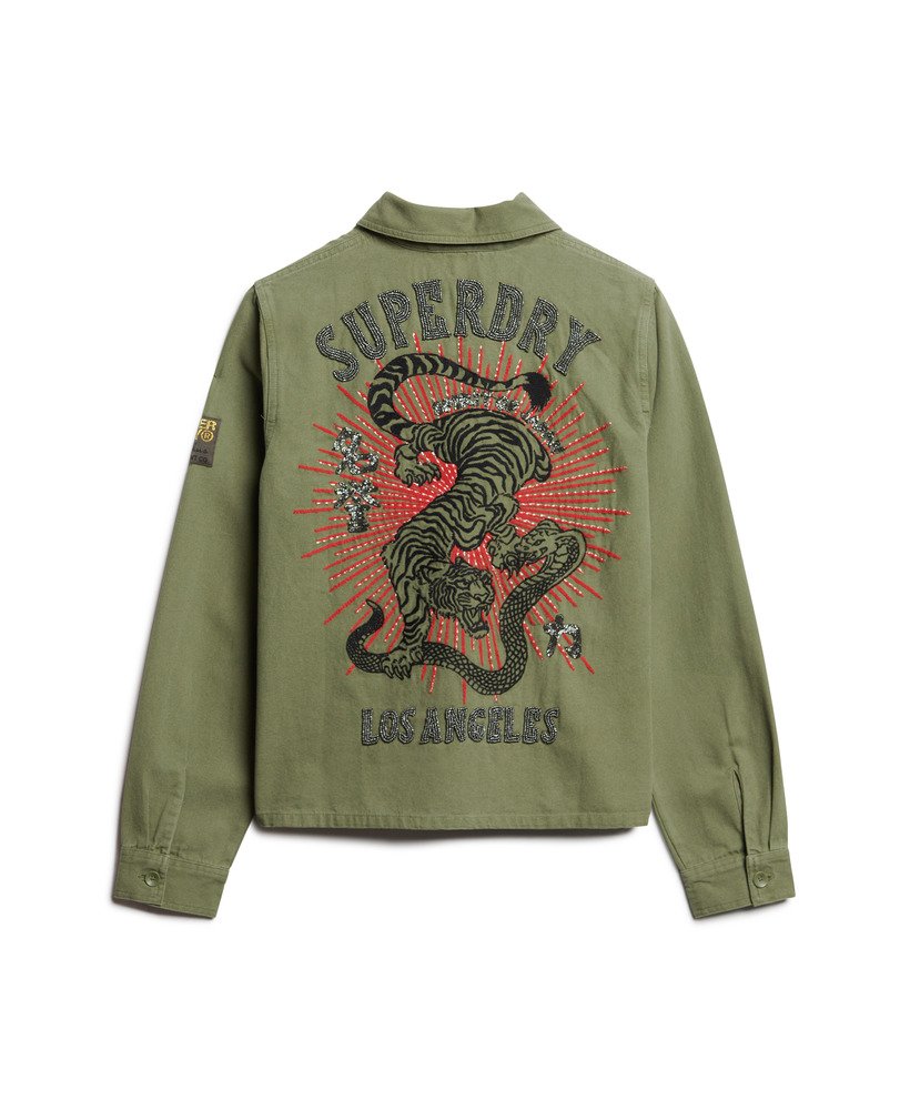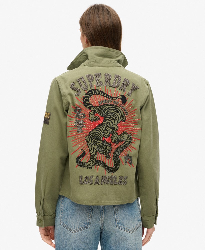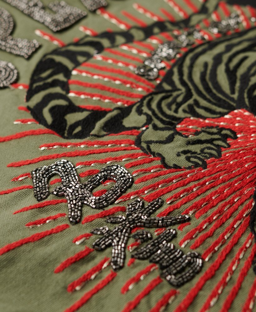 Tell a story with this iconic layering piece, the Embellished Military Jacket. It’s practical, reliable, and has endured the test of time to become a style staple. A reimagined vintage classic with cultural motifs from the East to create a striking take on this distinctive style. Bringing an edge to this staple with embellished graphics, this jacket is sure to complete your authentic style.