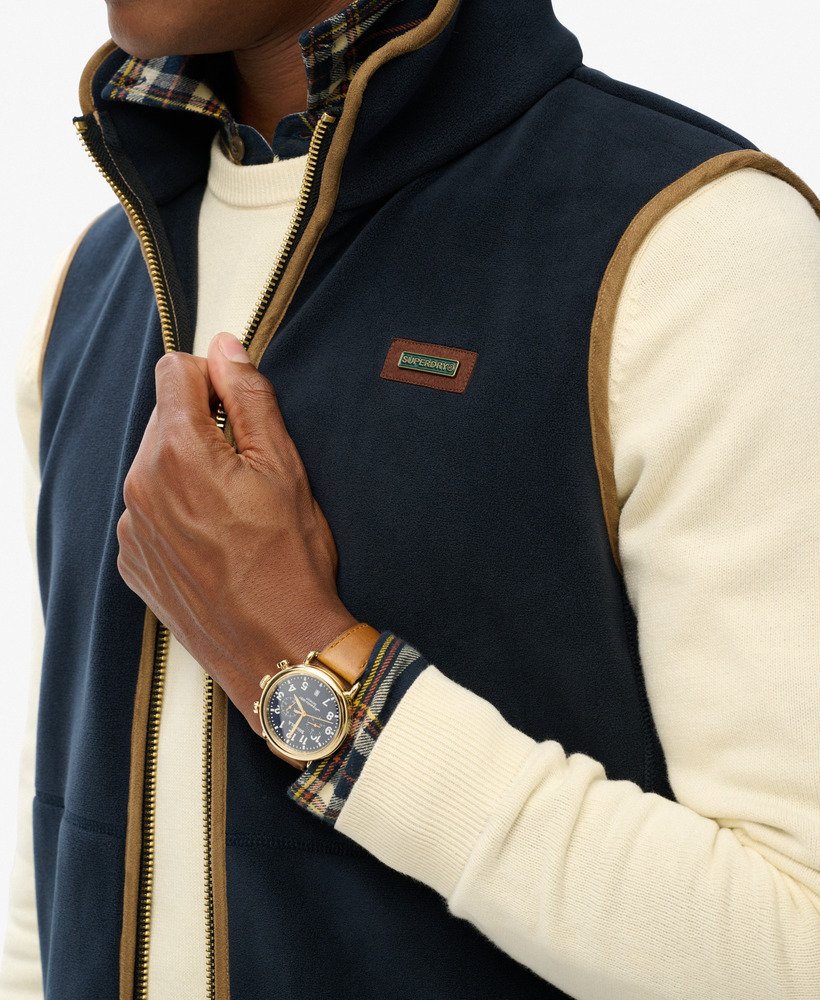 For a luxurious layering option that feels as good as it looks, the Estate Fleece Gilet has been designed specifically for this purpose. Subtle details like the contrast piping around the trims and the embroidered logo on the inside of the collar offer an especially premium finish, ensuring the focus stays on the softness of the fleece and the quality of the metal hardware.