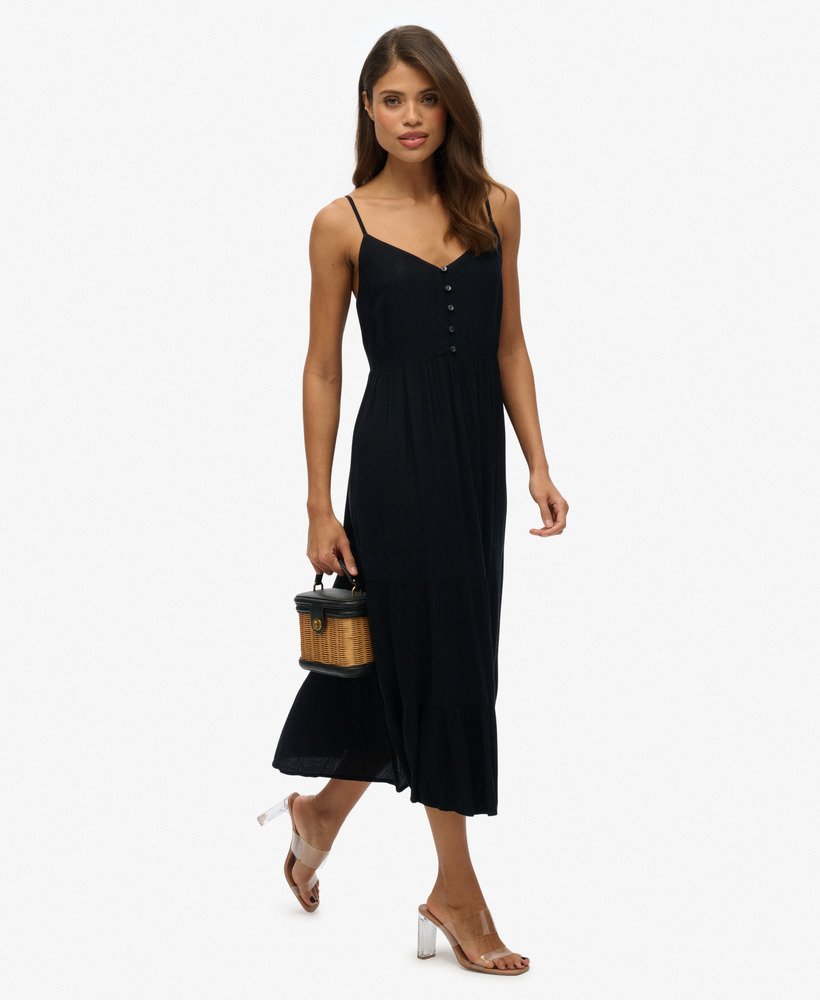 The Half Button Tiered Midi Dress is a gorgeous addition for the warmer months. Crafted with a chic silhouette and a stylish tiered skirt, it’s effortless to style while elevating your authentic looks.