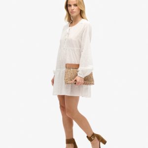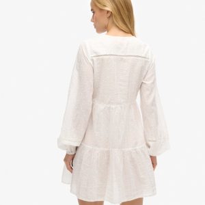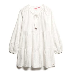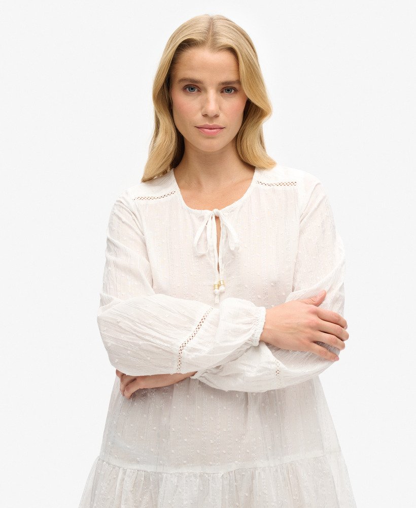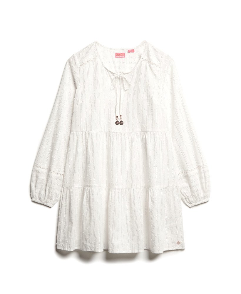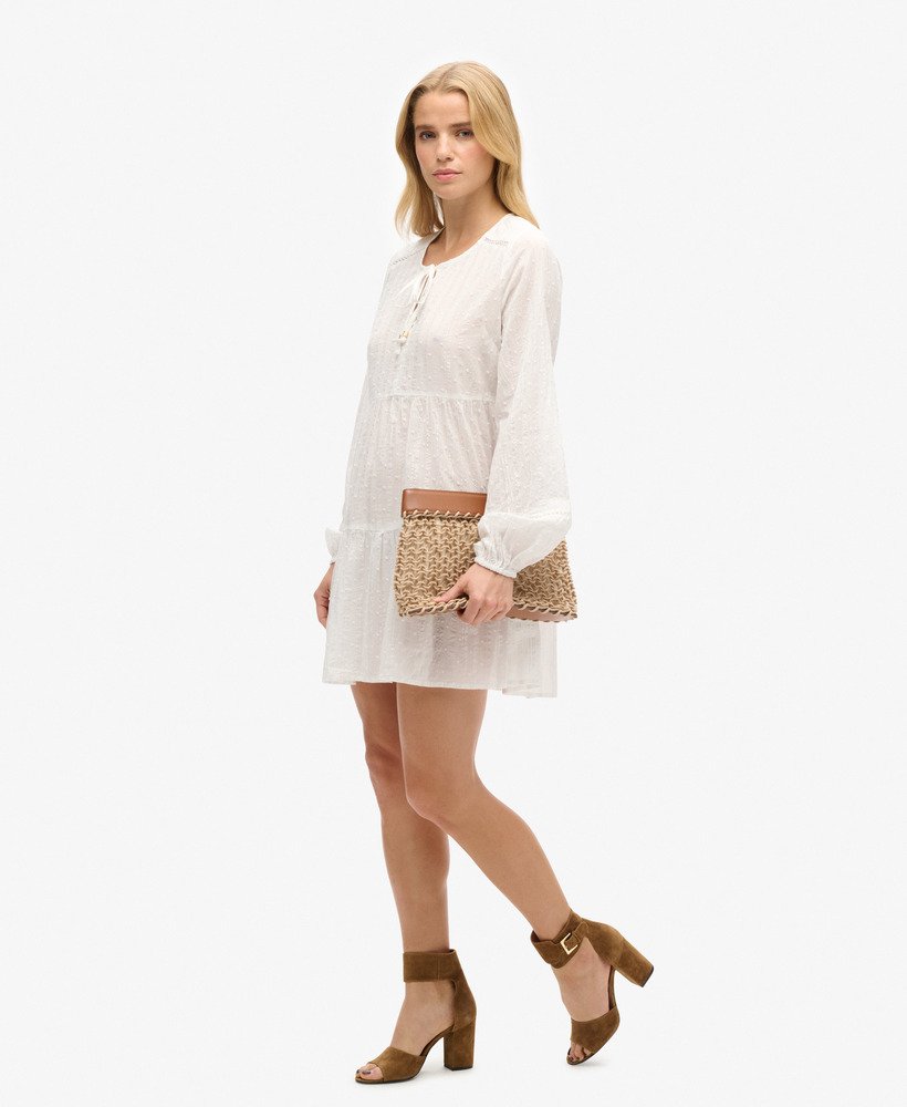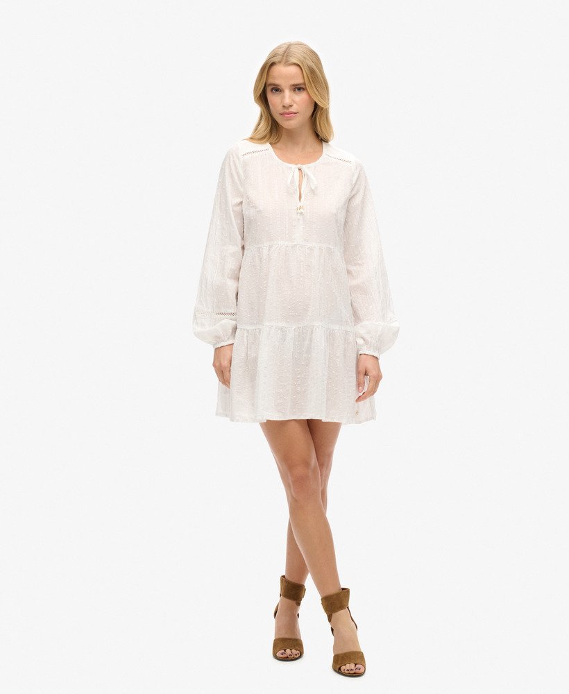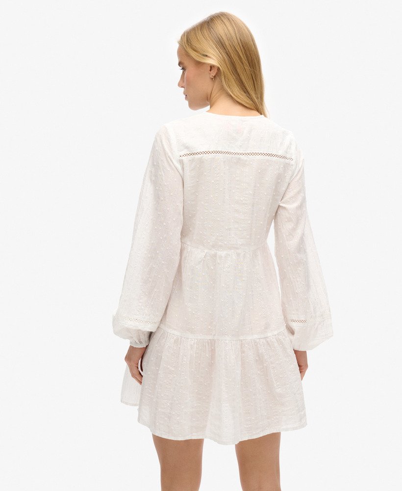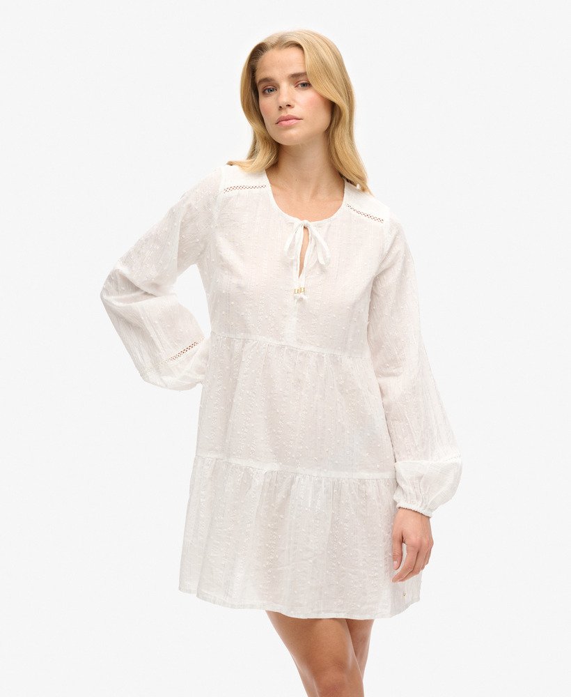 Summer style gets an extra little sparkle in the form of the Ibiza Long Sleeve Tiered Mini Dress. The tiered design brings a lightweight floaty feel to the dress while the visual interest is brought about by the subtle sparkle thread running through the Swiss dot fabric. Lace trim just adds the finishing touch. This is the perfect addition to your summer wardrobe where not only keeping cool is key, but also making sure you look and feel amazing.