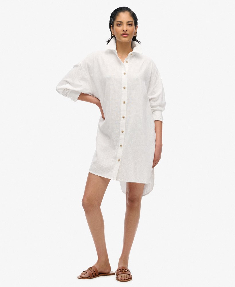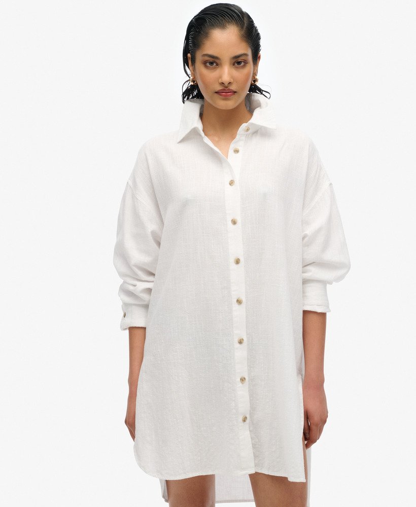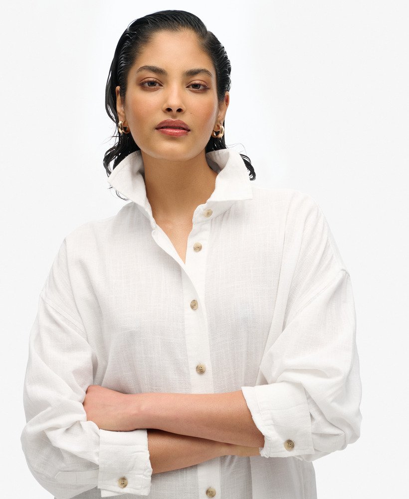 The perfect holiday shirt. Our Ibiza Longline Beach Shirt has been crafted to perfection for those beach days or hot summer evenings. The loose fit makes for the ideal light layer whilst the metal tab on the hemline effortlessly adds that touch of elegance and luxury to any outfit.