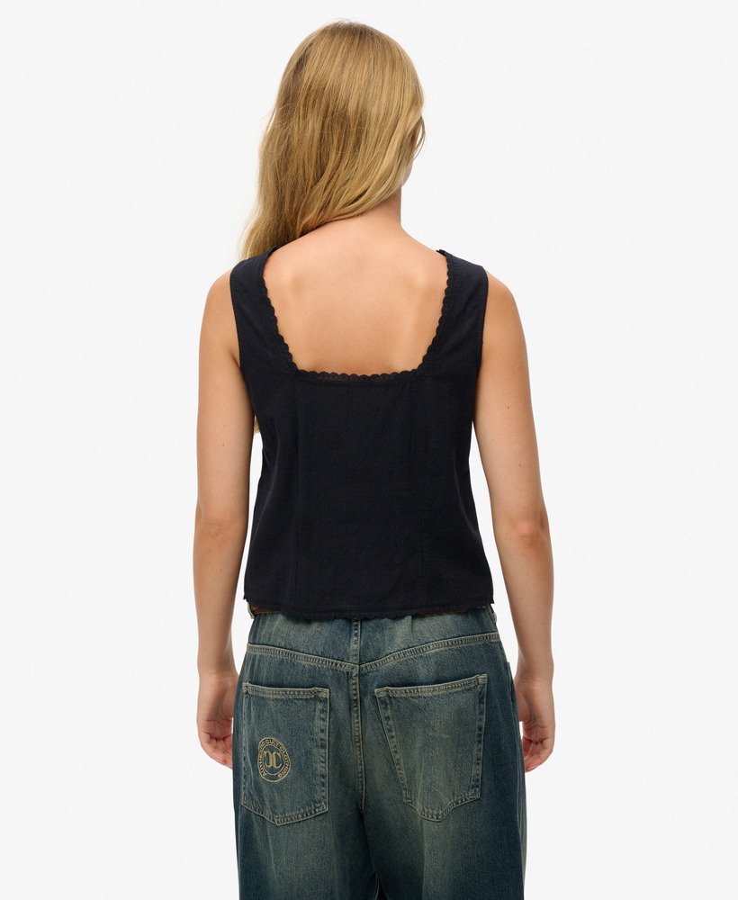 A summer staple. Our Ibiza Sleeveless Top has been crafted with a double lining and delicate lace trim throughout, style with a loose skirt or a pair of classic denim shorts for the go-to summer look.