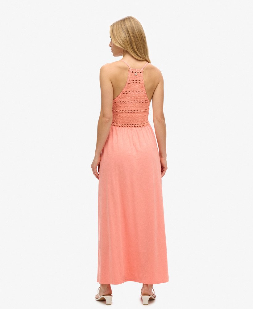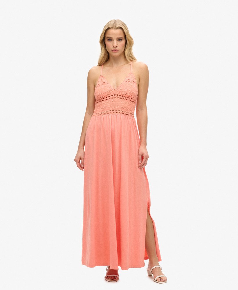 Our Jersey Lace Maxi Dress adds a touch of authenticity to your wardrobe. We’ve crafted this dress to bring you a refined statement piece, so you can take your sunny outfits to a new level. Whether you’re covering up at the beach or channelling those summer vibes, this maxi dress is a perfect choice.