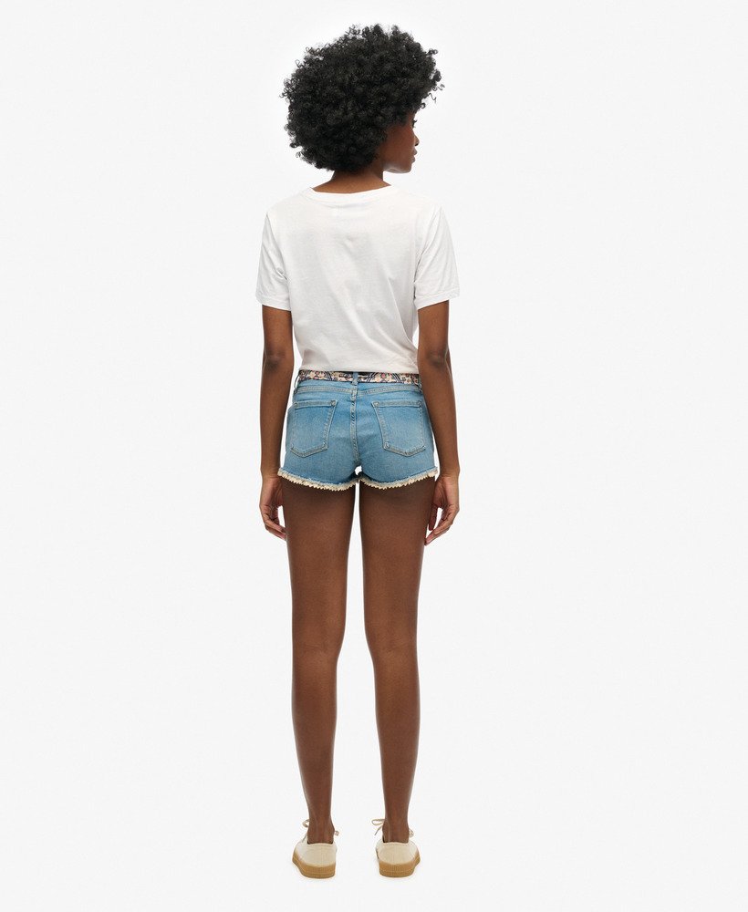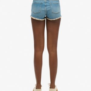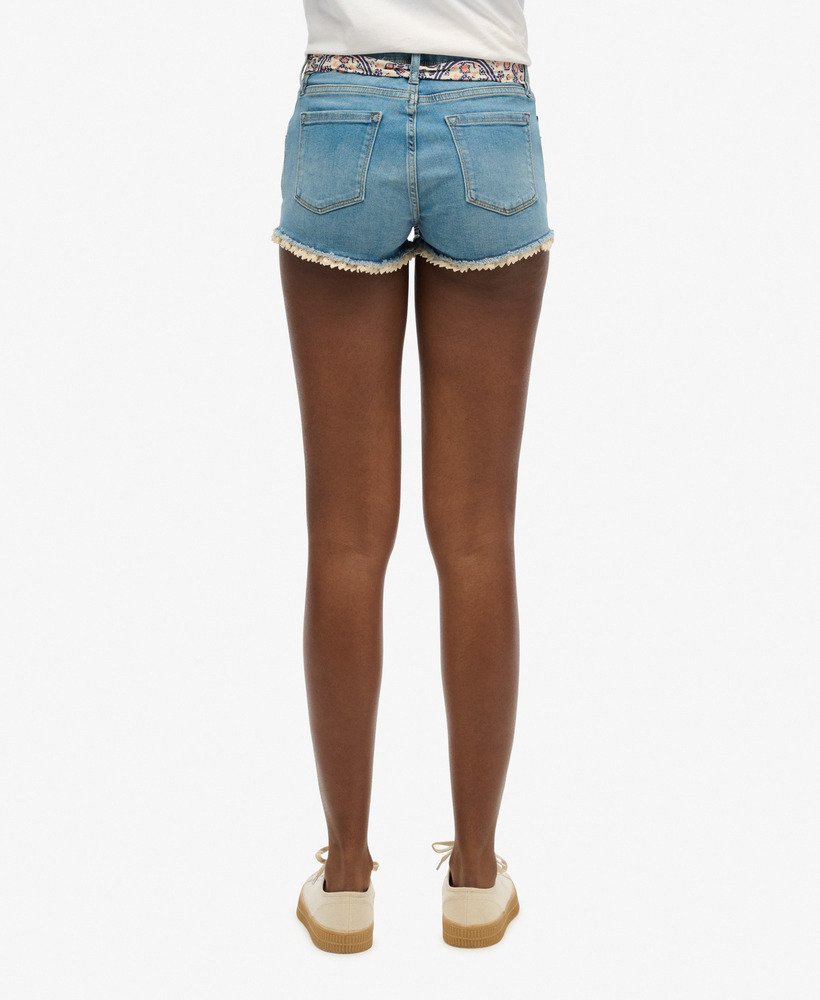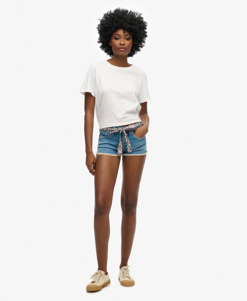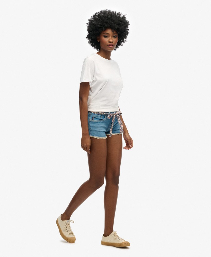 Superdry women’s Lace hot short. These cute shorts feature a zip and button fastening, belt loops, and the classic five pocket design. Finished with a printed fabric belt, lace trim, and a Superdry logo patch on the waistband. The perfect shorts for those summer beach days.