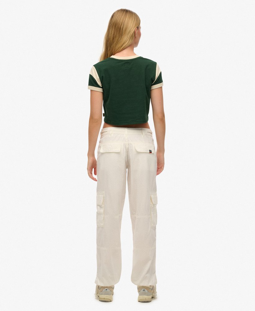 - Woven material and low rise fit