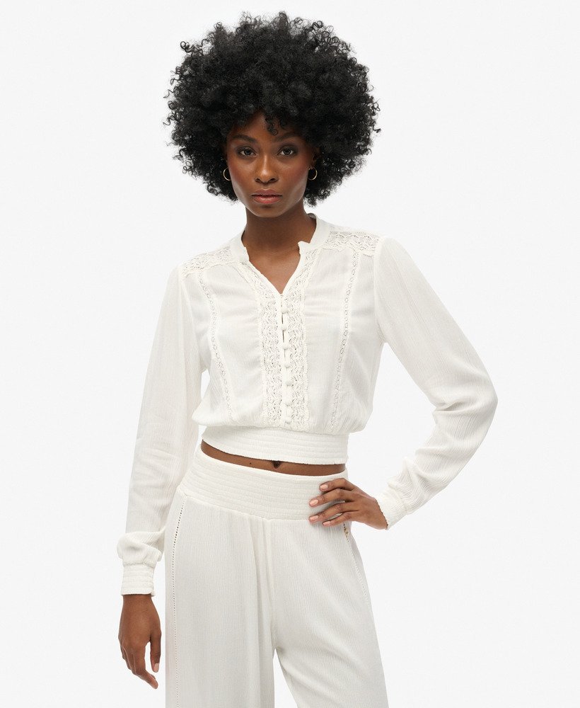 Our Long Sleeve Lace Trim Smocked Blouse is a uniquely bohemian piece that’s sure to elevate your style. Delicate lace adds layers to this blouse in a subtle way, whilst the smocked trims bring the look together to create a flattering silhouette. Choose this option to add an artisan, carefree vibe to your look.