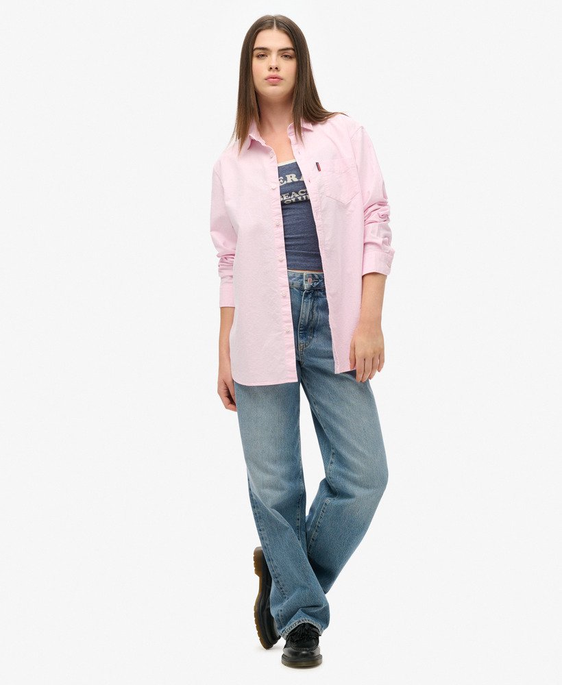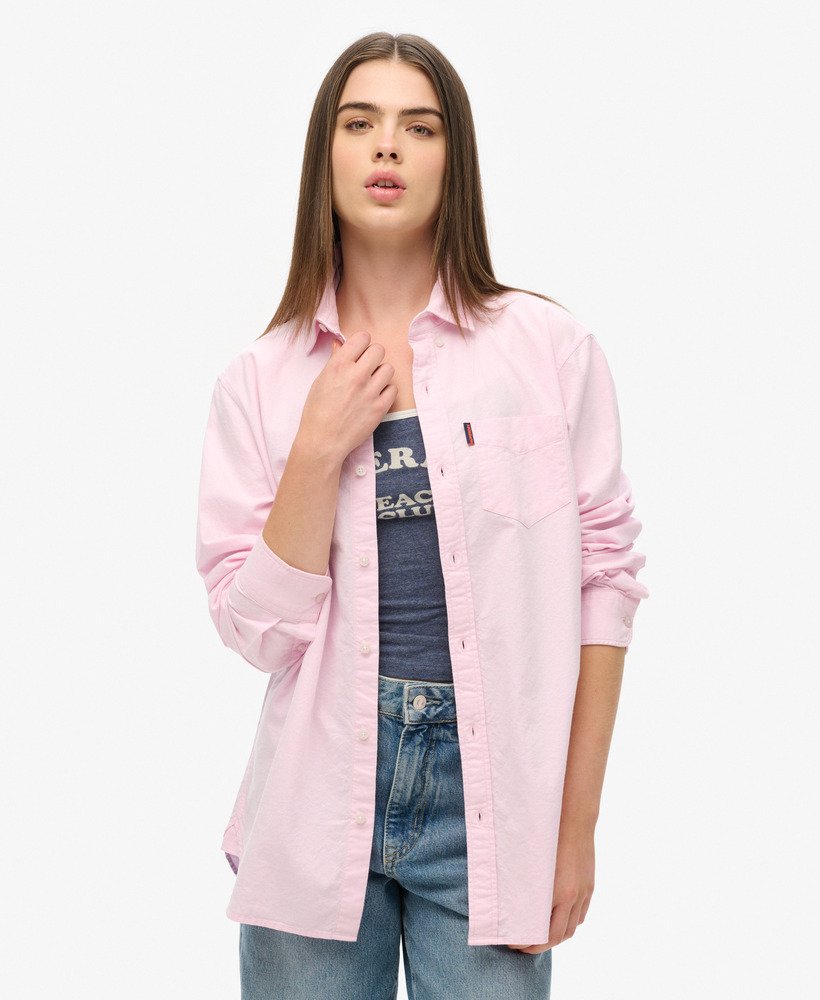 A traditional staple in every wardrobe- elevated with Superdry quality and style. Our Long Sleeved Oxford Shirt has been reinvented with a trendy oversized fit allowing you to sharpen up your wardrobe effortlessly. Whether you’re reinventing your work outfits or looking for a layering piece under a classic tee with a pair of jeans, this shirt is as versatile as it is classic.