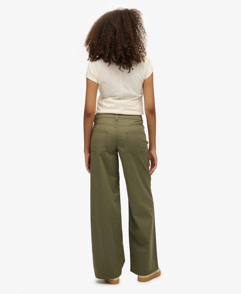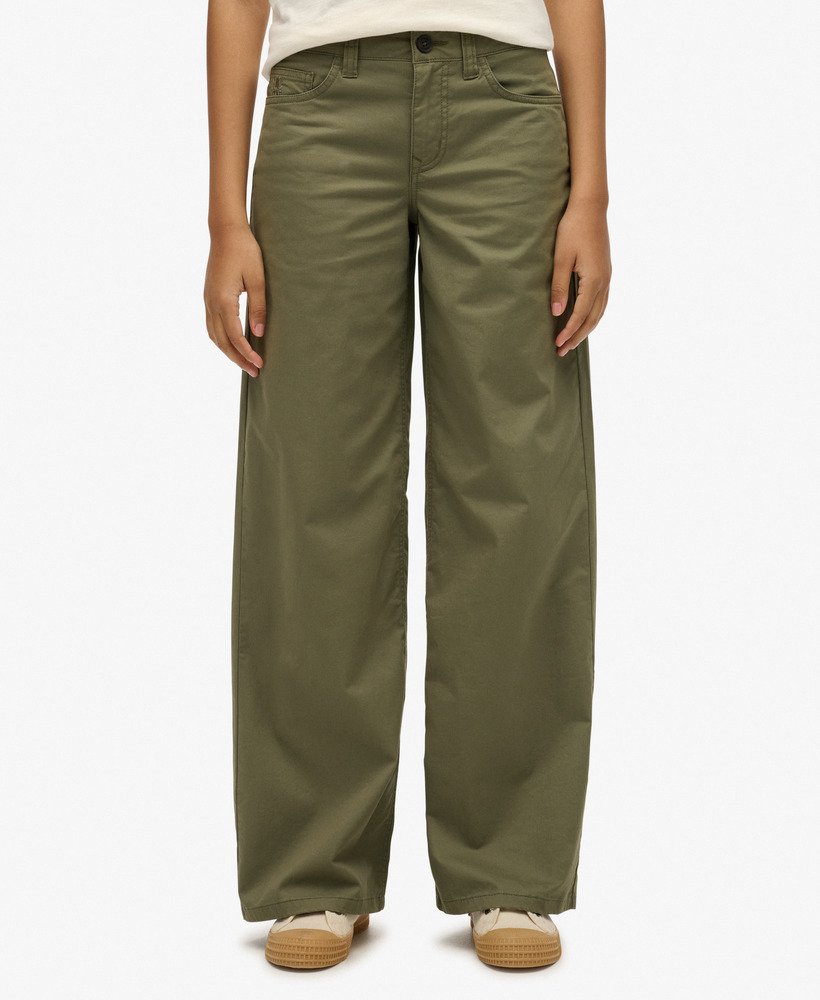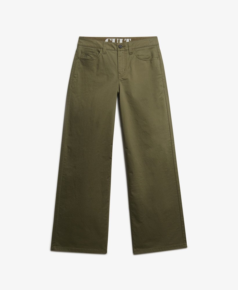 The perfect blend of contemporary and street style. Our Mid Rise Baggy Chino have been expertly curated with a wide fit and sleek branding, this creates a flattering silhouette that’s effortless to style for the new season.