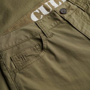 - Five pockets with an embroidered logo on the front