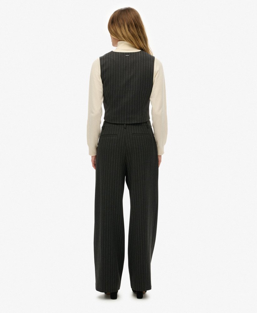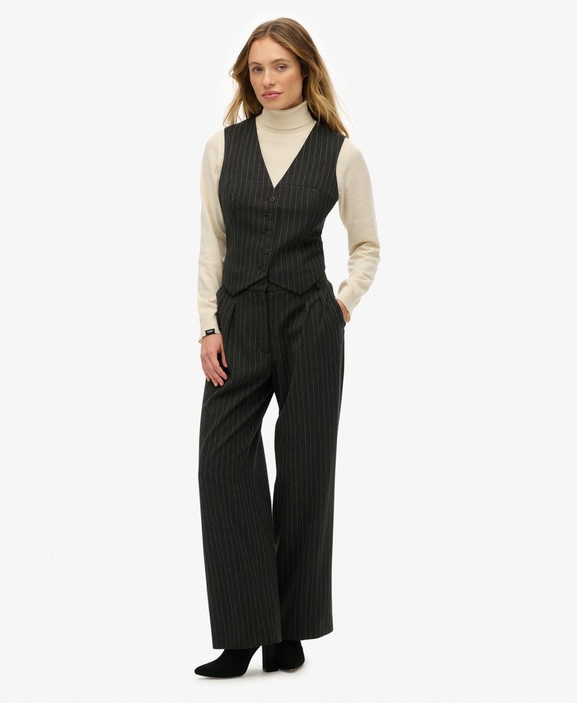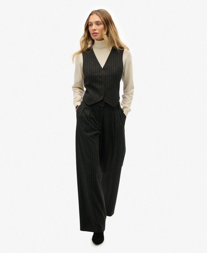 Build up your premium mature wardrobe this season with our Pinstripe Collection of blazers, trousers, waistcoats and mini skirts. The history of the pinstripe suit ensemble can be traced back to the 1800’s, and has remained a staple of modern fashion ever since then. The Mid Rise Pinstripe Trousers are the perfect companion to this new look, pair with the blazer for a timeless work ready style, or with the waistcoat and rollneck for a cool but elevated vibe.