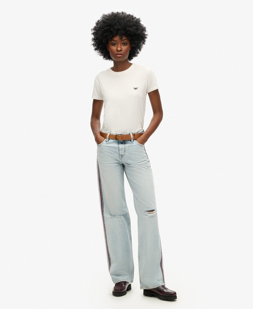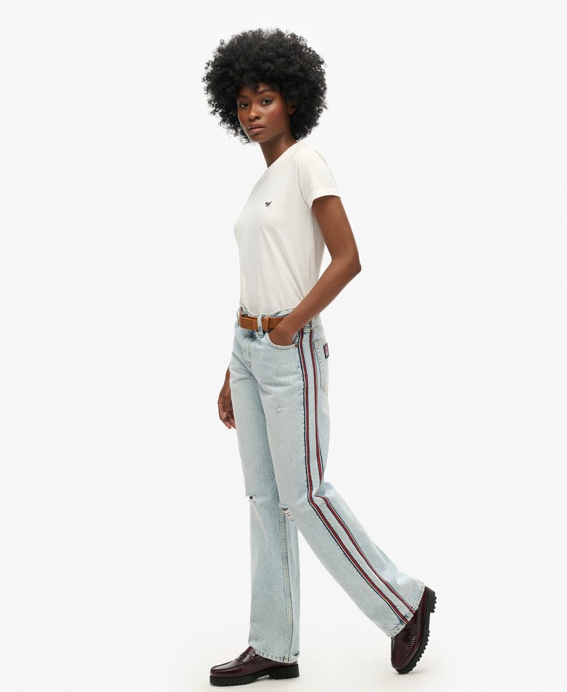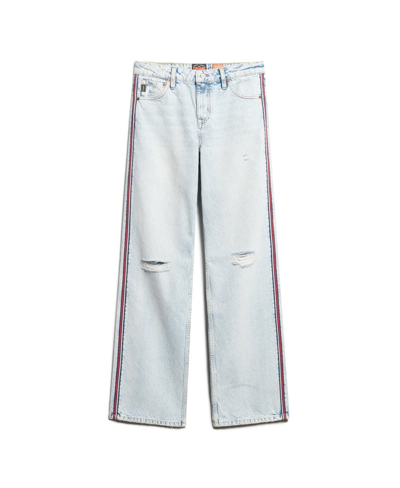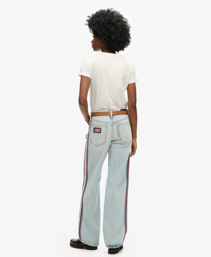 Wide-leg jeans have well and truly become a wardrobe staple, so comfortable and versatile that we can’t imagine how we ever went without them. We’ve taken this iconic shape and added some extra details to bring you the Mid Rise Wide Leg Double Tape Jeans, featuring twin striped taping down each leg and a distressed finish for a contemporary look. Pair with trainers and your favourite tee to keep your style fresh and playful all season long.