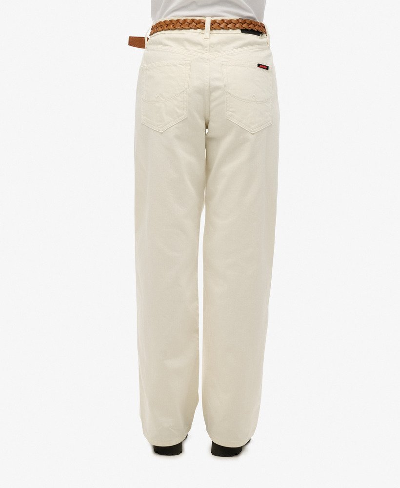 - Button and zip fastening with belt loops on the waistline