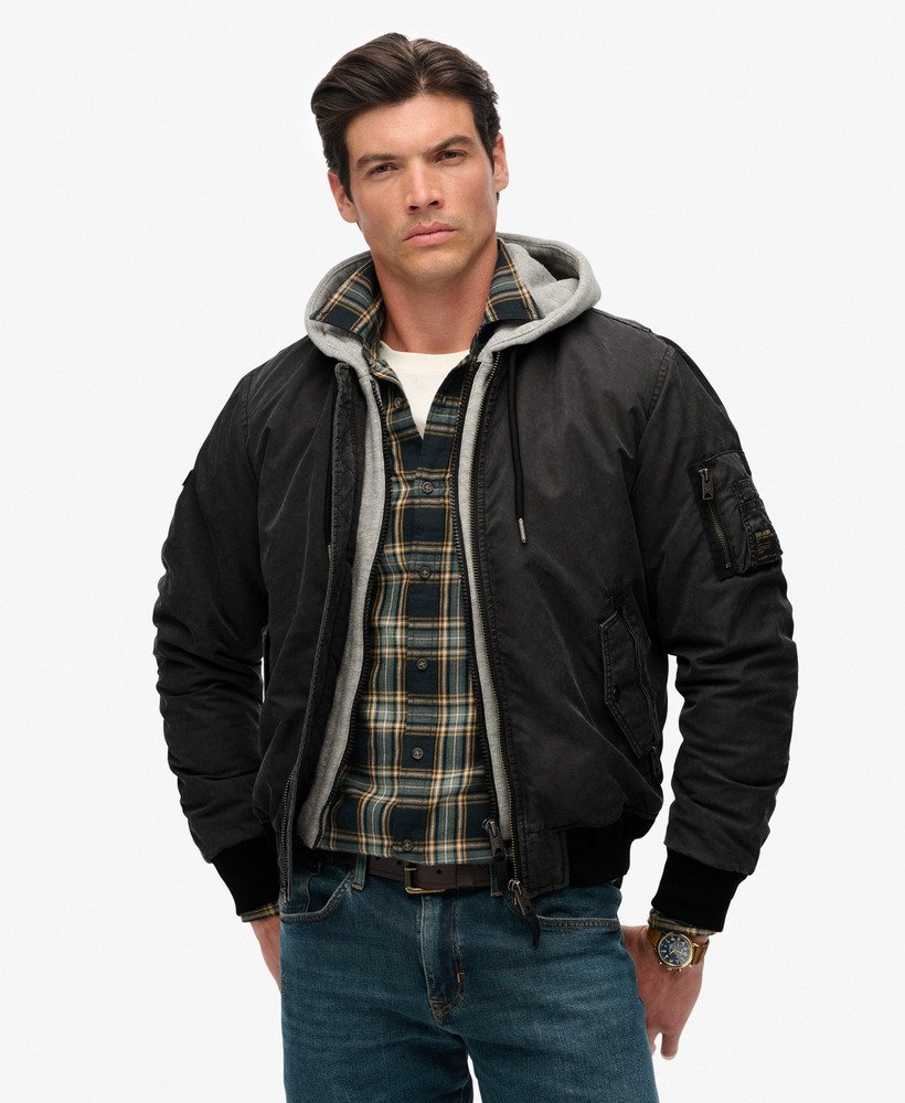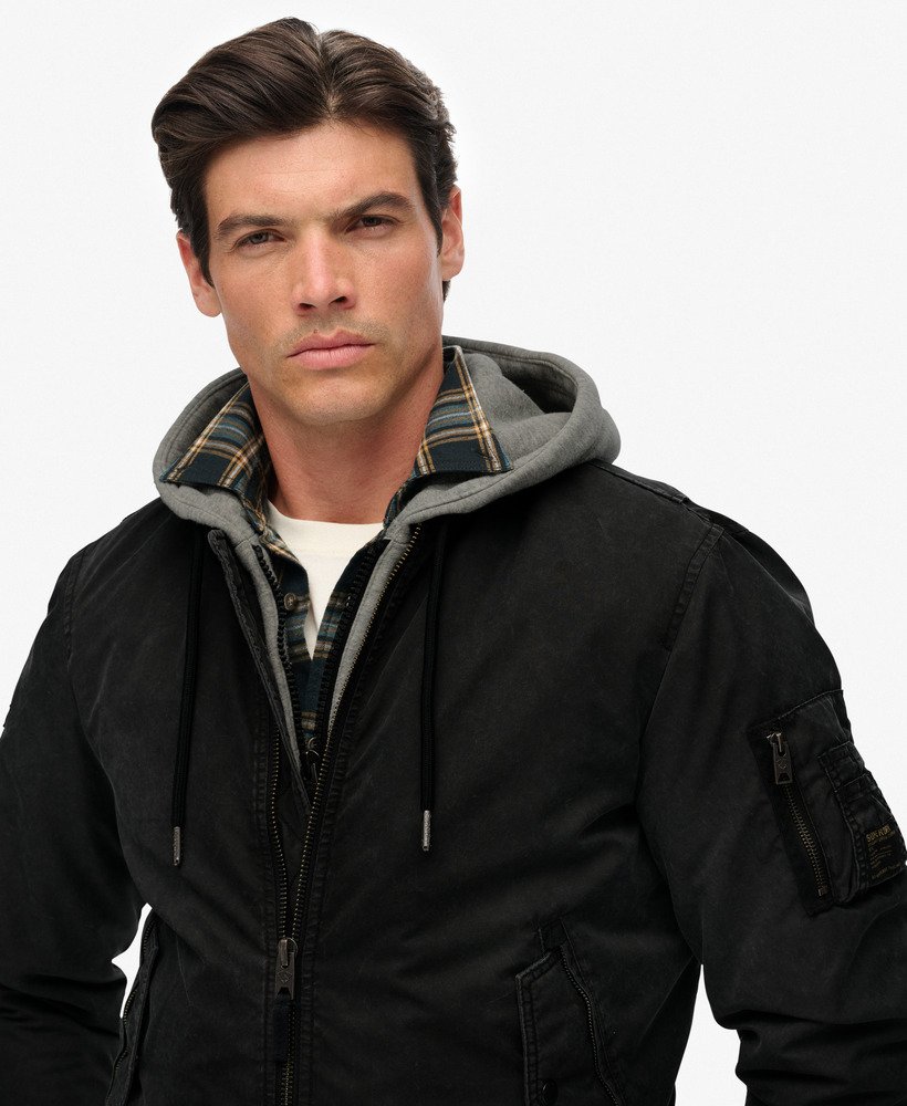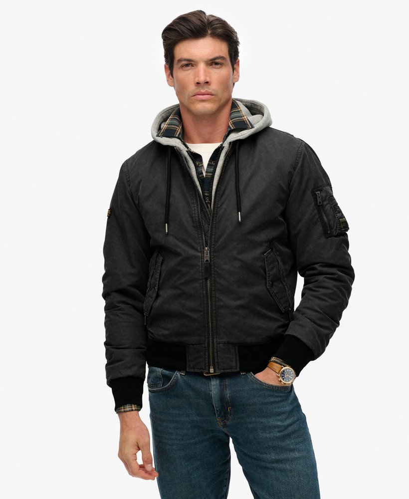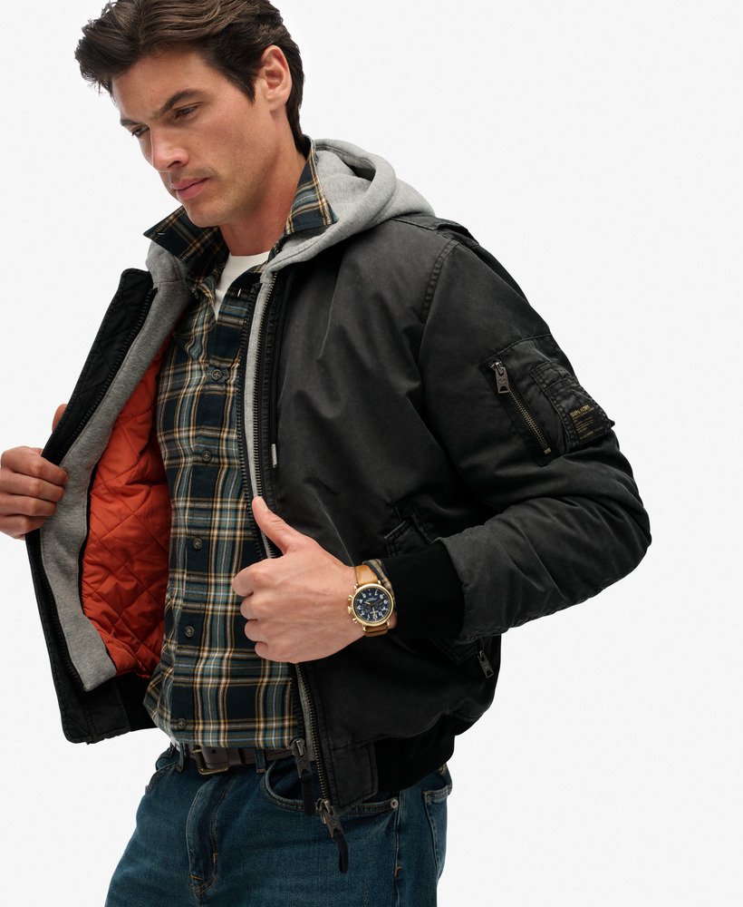 An urban twist on a Superdry classic. The Military MA1 Bomber Jacket has been curated with only the finest details, an attached hood gives the illusion of layering and the rugged patches on both sleeves only add to the worn, vintage vibe. It’s the perfect refresh for the season and we’ve made it easy to show off your style in the cooler months.