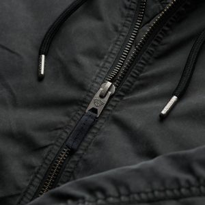 - Attached hood with dual zip fastening and adjustable drawcord