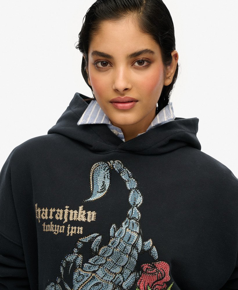 The Neo Trad Tattoo Relaxed Hoodie has been designed to be your favourite go-to. Crafted with gorgeous dropped sleeves and a sumptuous lightly brushed living, the comfort and silhouette these elements create is unmatched. Finished with an intricate, eye-catching embellished graphic on the chest, you can wear it to make a statement or on cosy days for a versatile, stylish look.