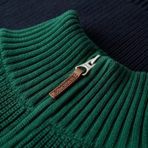 - Ribbed cuffs and hemline with a signature tab on the sleeve