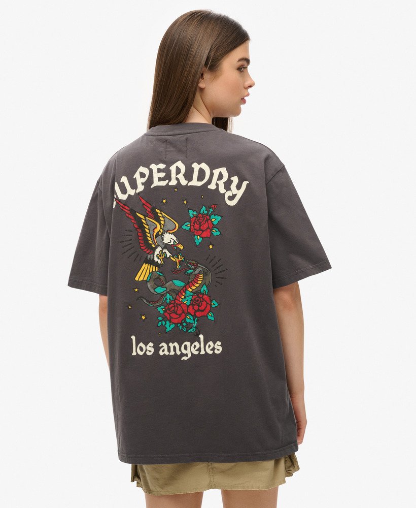 Bold and stylish, our Tattoo Back Graphic Loose T-Shirt is the perfect seasonal refresh. With inspiration from urban street style with the intricate graphic on the back, paired with the refreshing oversized fit, you can wear it with jeans, shorts, or a skirt for a stunning and reliable styling piece.