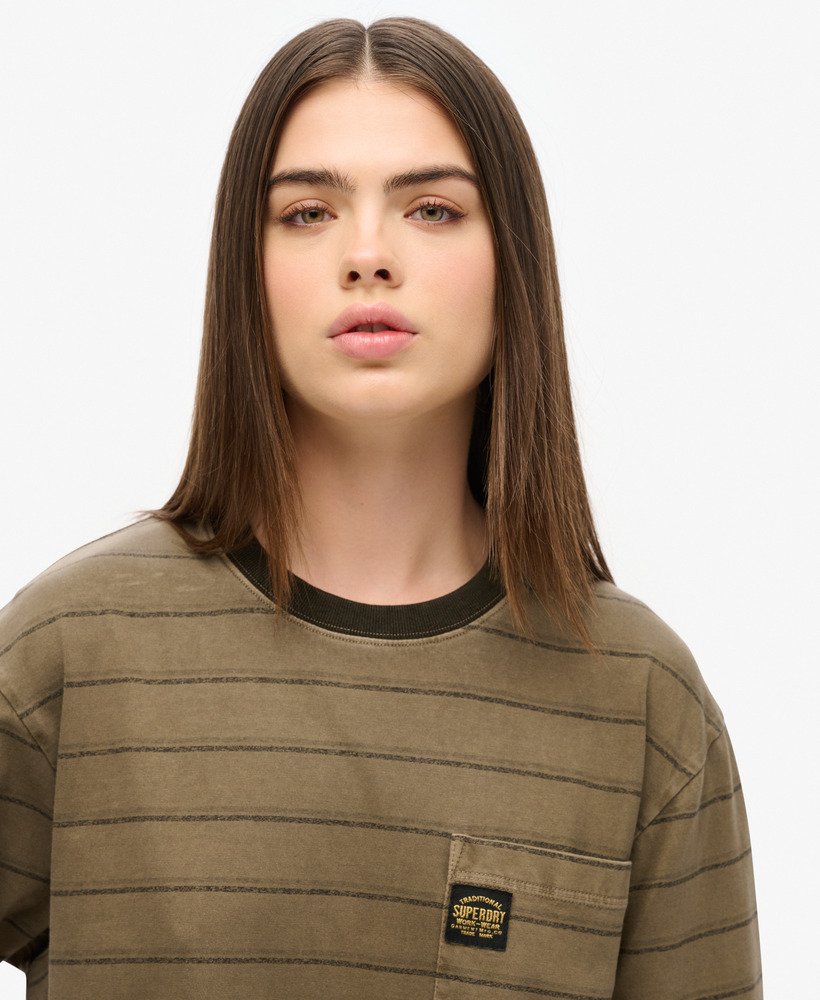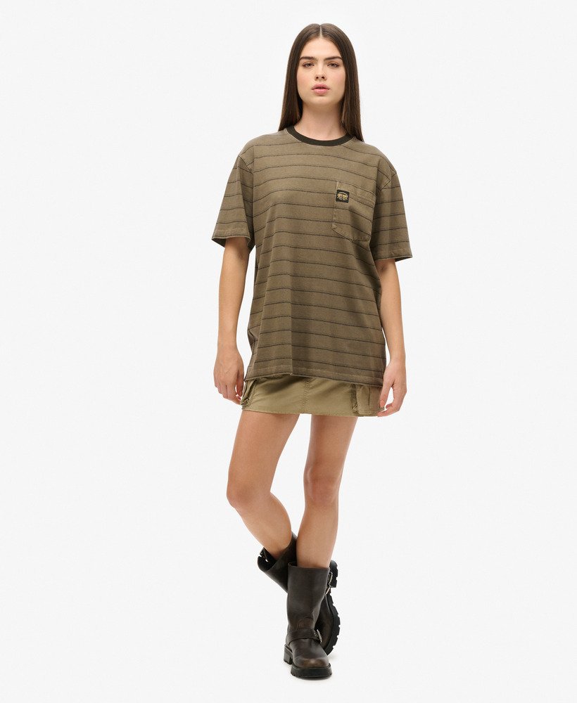 Our Textured Stripe Pocket T-Shirt calls on heavy influences from vintage clothing. The tee creates a classic silhouette and is further elevated by the reinvented fit, allowing it to seamlessly blend into your seasonal rotation.