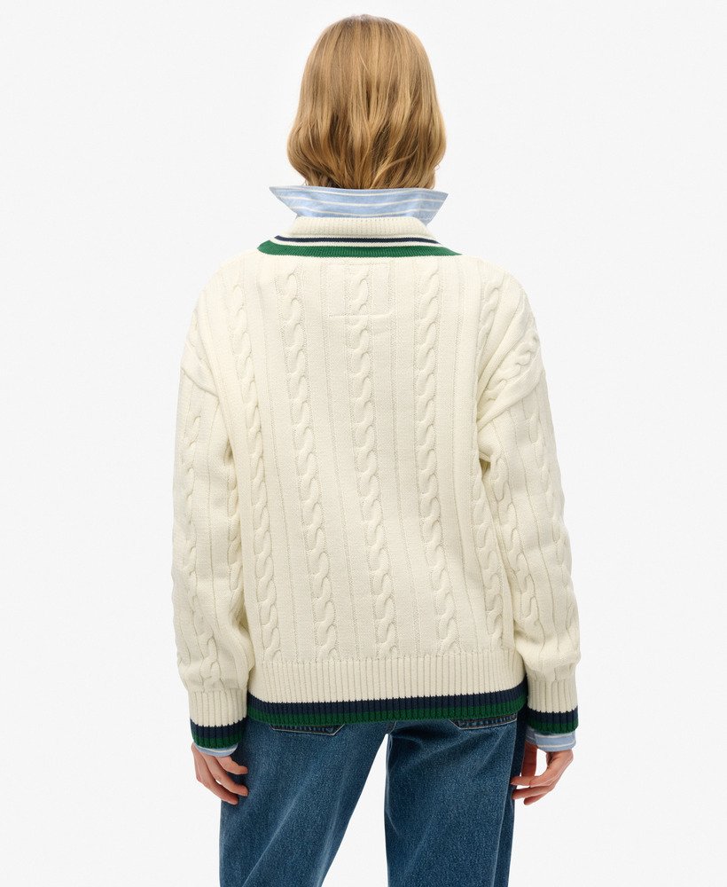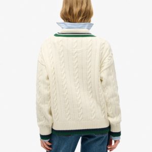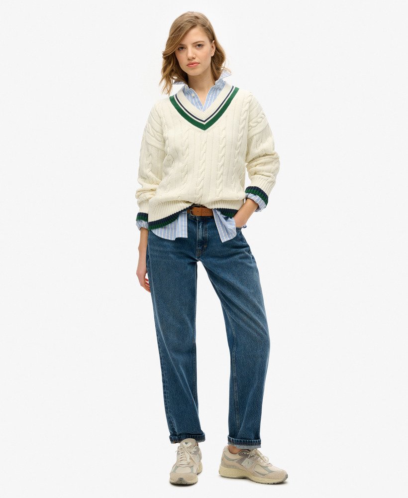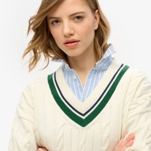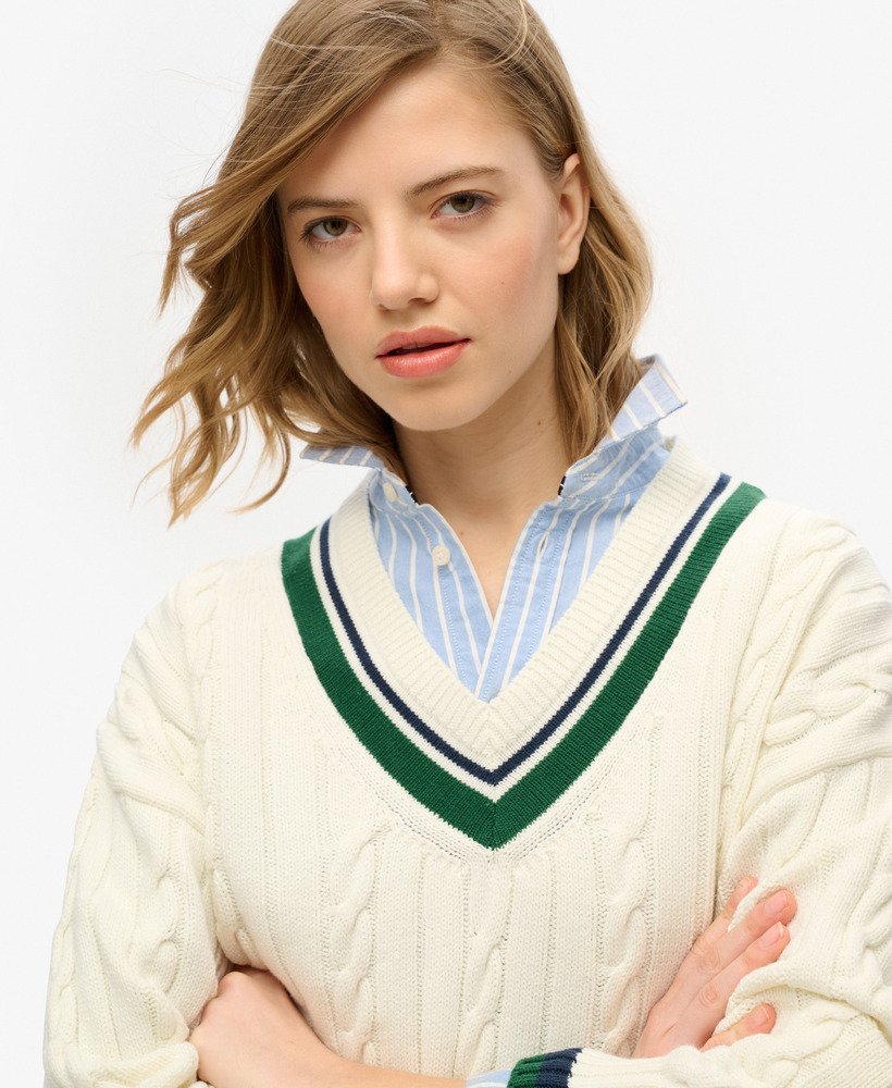 An effortless way to elevate your casualwear to a luxurious statement look. The Oversized V-Neck Cricket Knit Jumper offers a preppy aesthetic, adding texture to your authentic style. We’ve taken a classic knitwear staple and giving it a distinctive look with its contrast trims and oversized feel, creating a chic aesthetic. Cosy, warm and stylish – just what you need for those colder months.