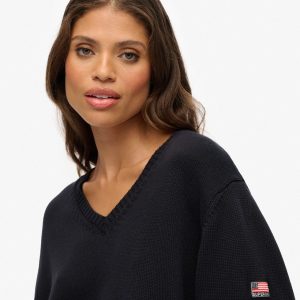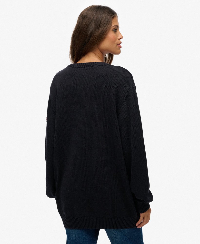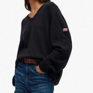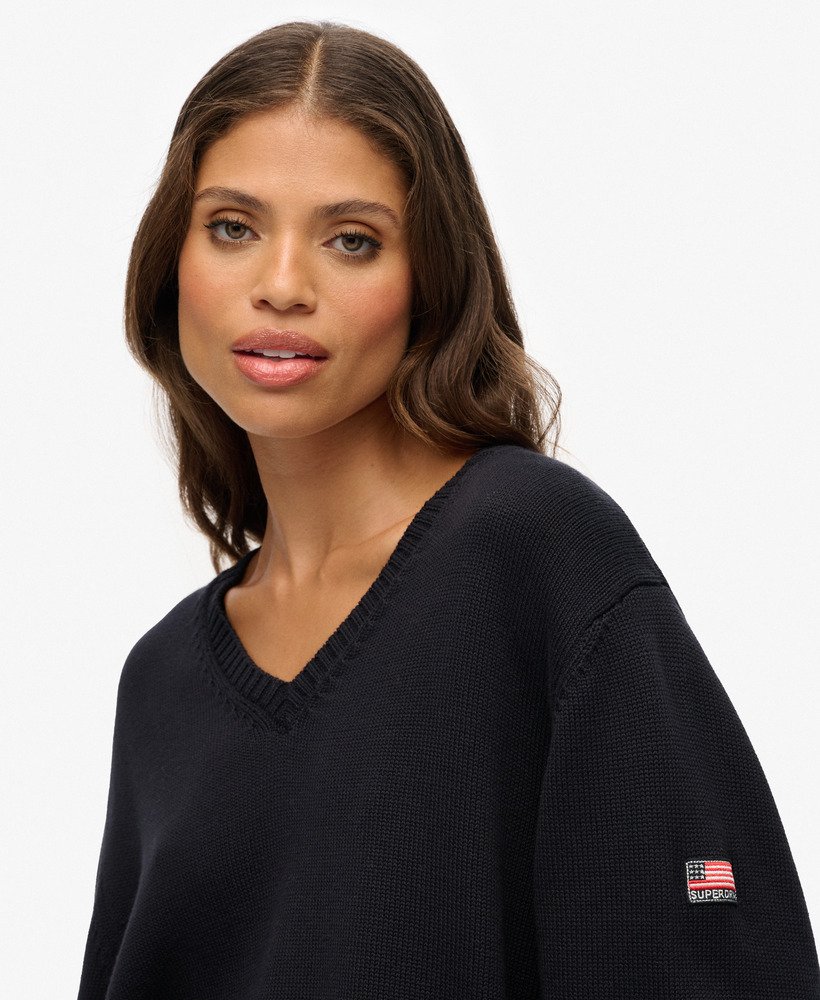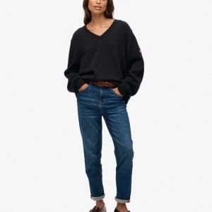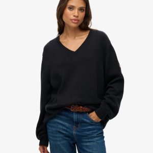 The Oversized V Neck Jumper adds a touch of authenticity to your personal look, an ideal transitional piece for the season. Crafted effortlessly with our superior Superdry quality, this jumper creates an elegant silhouette with its oversized fit and dropped shoulders. For a vintage touch, a Superdry badge is subtly embroidered on the sleeve as a subtle branded finish.