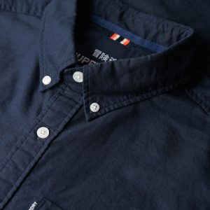 - Standard button-down collar