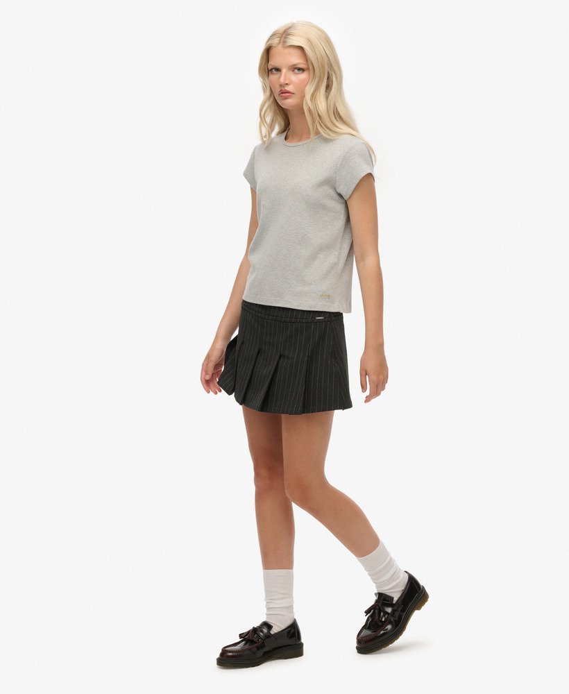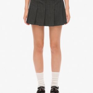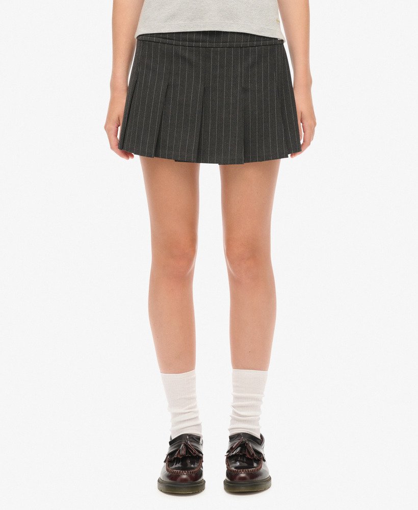 Build up your premium mature wardrobe this season with our Pinstripe Collection of blazers, trousers, waistcoats and mini skirts. The history of the pinstripe suit ensemble can be traced back to the 1800’s, and has remained a staple of modern fashion ever since then. Your new ultimate chic styling option is here in the Pinstripe Pleat Mini Skirt. Adaptable to a variety of situations and can be styled to match your own authentic vibe. This elevated piece exudes confidence with a bold and sharp look thanks to the meticulously crafted pinstripes and pleats.