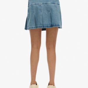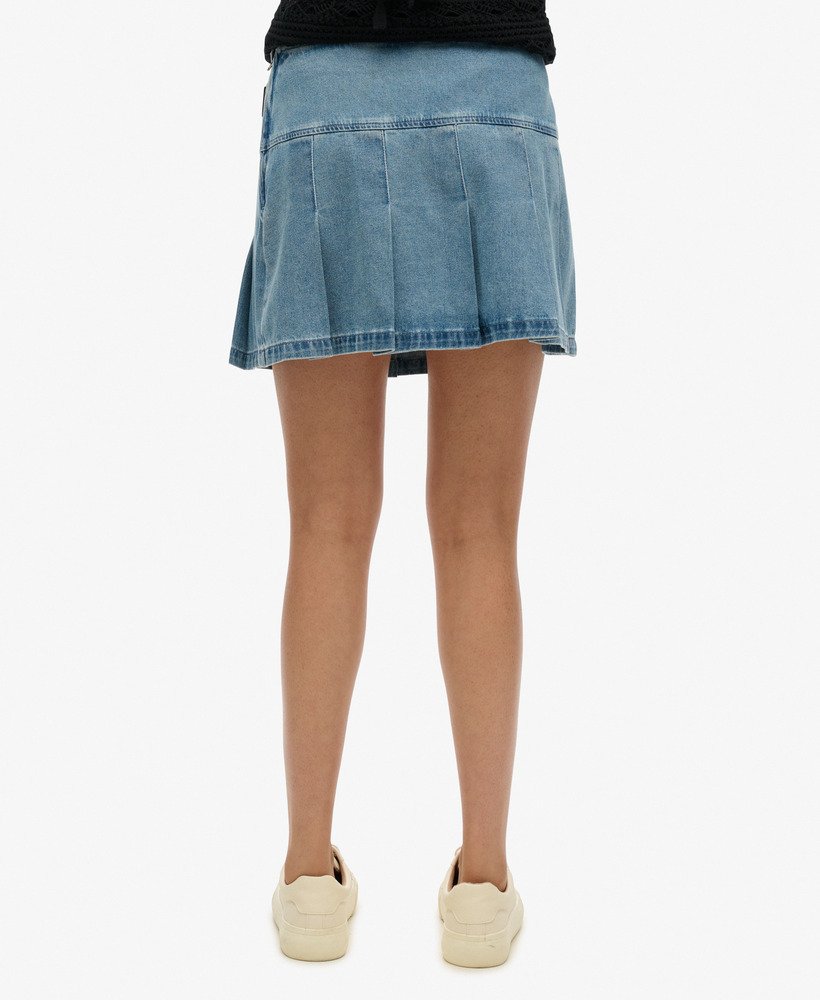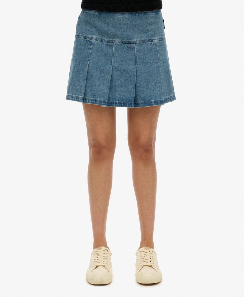 - Zip-fastened waist with a pleated hem
