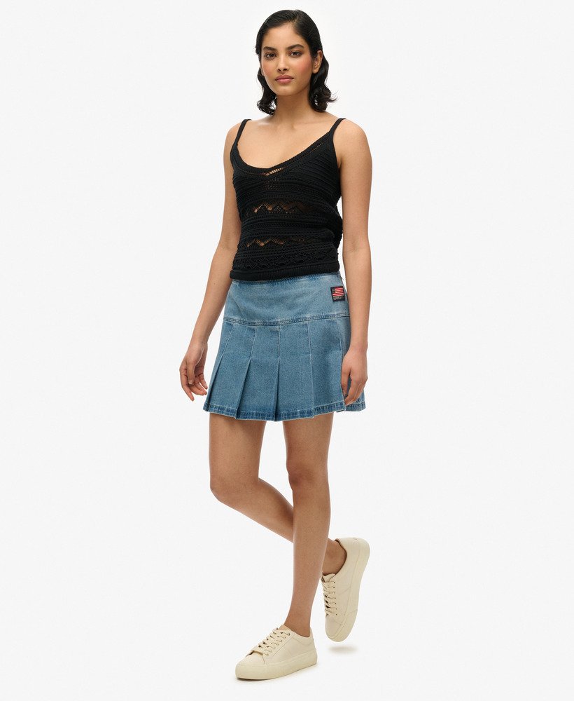 This gorgeously preppy addition to your wardrobe has been curated with an authentically vintage badge on the back, making it perfect for elevating your summer looks for an eye-catching stylish outfit. The pleated hemline adds a distinctive feminine vibe, allowing you to refresh your classic style.