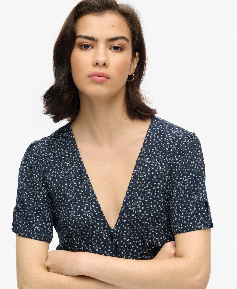 - V-neck with button through design