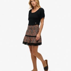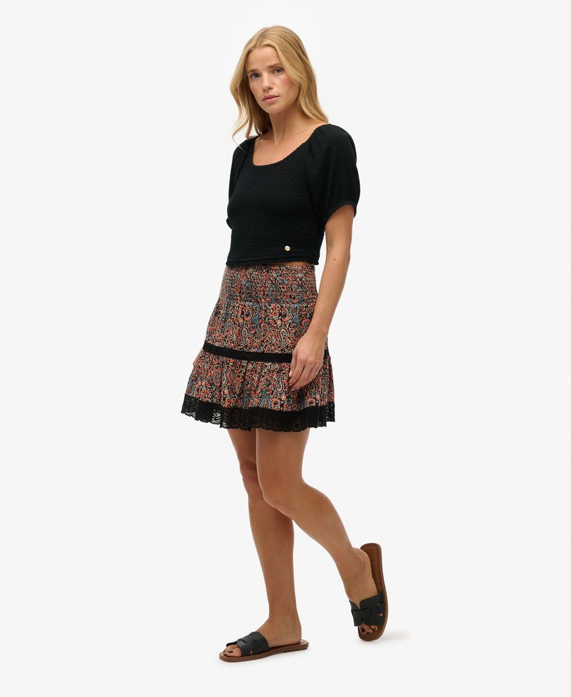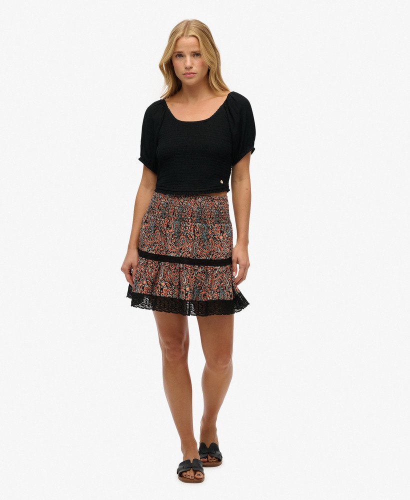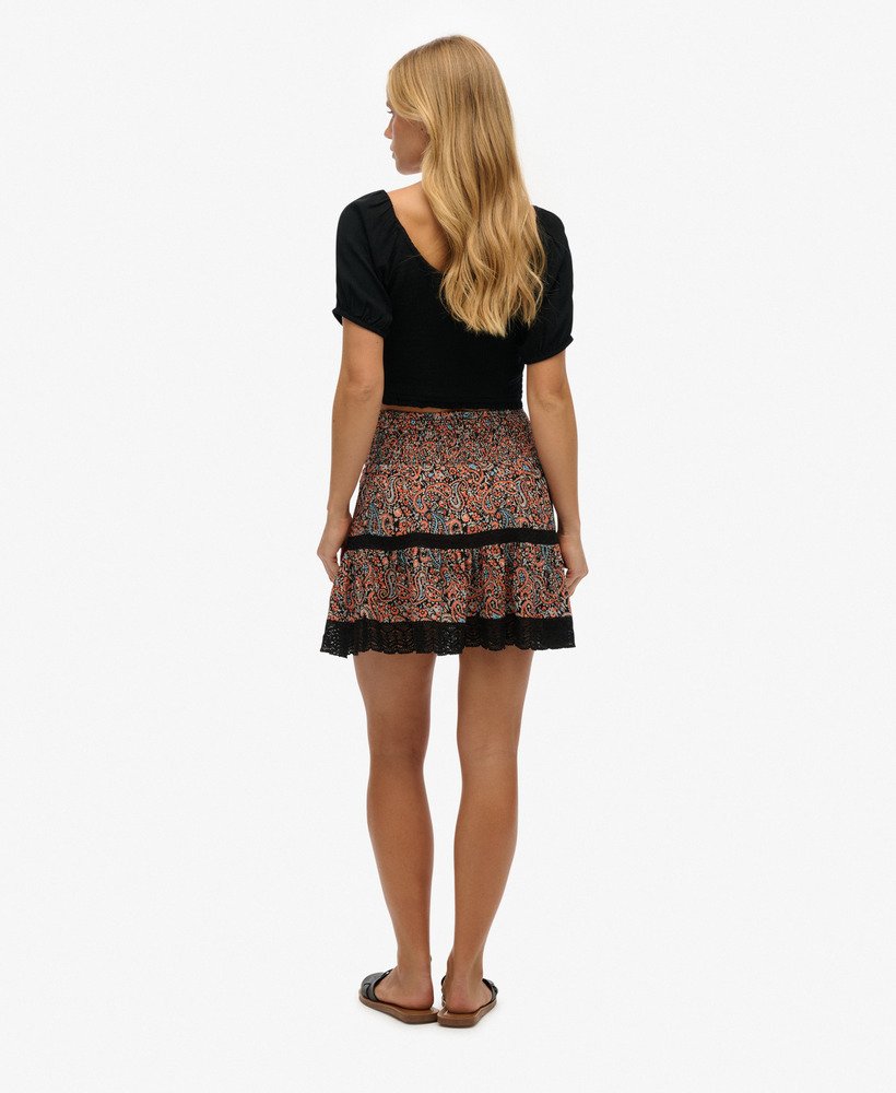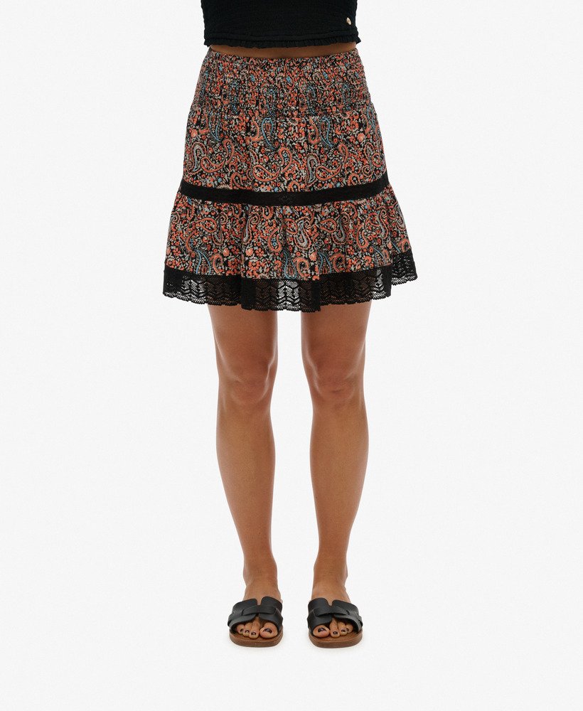 The Printed Lace Trim Mini Skirt is a timeless summer staple that brings you a delicate vintage aesthetic to add to your sunny day wardrobe. This lace detailed free-flowing piece is an effortless way to elevate your summer looks with a touch of bohemian elegance to your personal style, a great addition to your wardrobe.