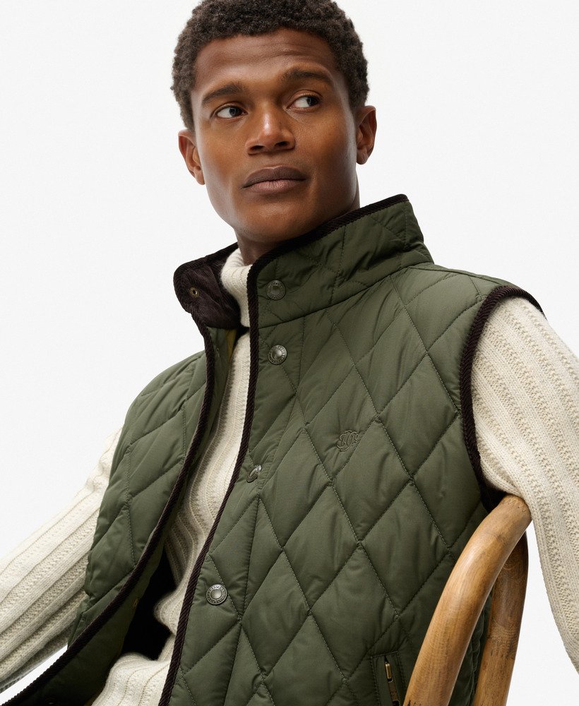 The Quilted Estate Gilet is a luxury layering option. Crafted with a sumptuous, lightly quilted padding and brushed trims, the gilet is full of immaculate quality, while the DWR coating and zip fastened pockets add the perfect balance of practicality.