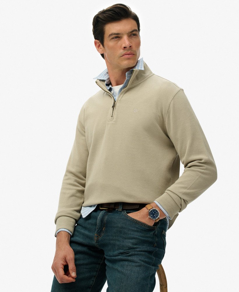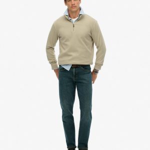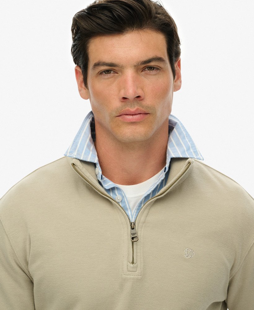 Bring a subtle elegance with the Ribbed Half Zip Jumper. This smart layering option brings sophistication and style to your casualwear with its timeless simplicity. This half zip jumper is crafted with our iconic Superdry quality for luxuriously soft comfort that combines with a classic cut to create a minimalistic style. Create an effortlessly confident look with your favourite jeans and a pair of boots and sharpen up your casual wardrobe.