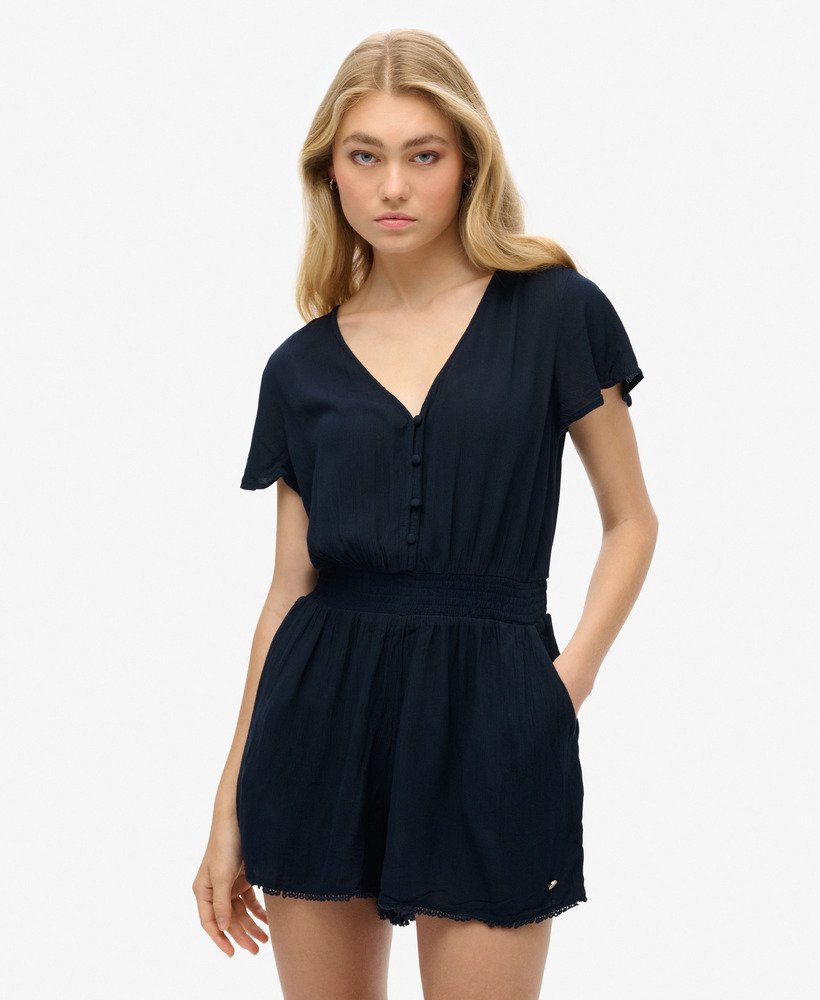 A comfortable stylish staple to bring those beach vibes to your day-to-day wardrobe. The Short Sleeve Beach Playsuit brings a vibrant delicacy to your outfit. A free-flowing lightweight option that will allow you to express your authentic self.