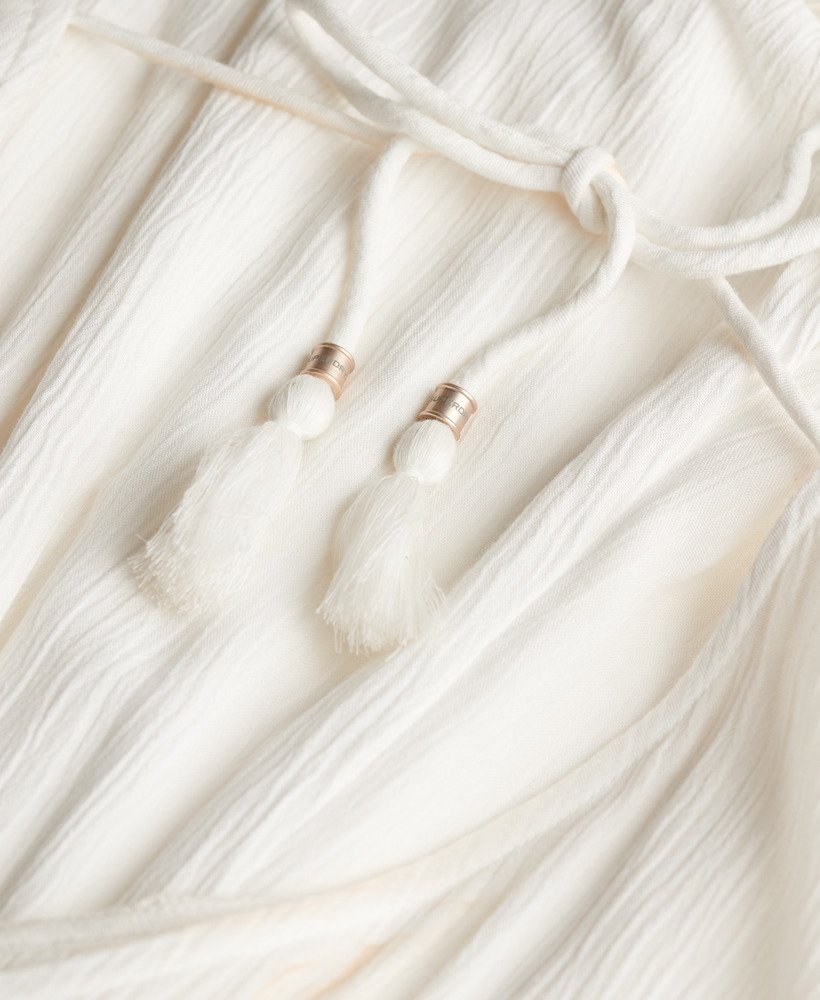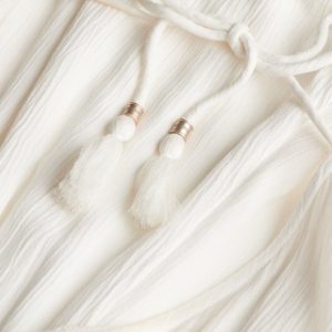 - Tie fastening on the back with tassels