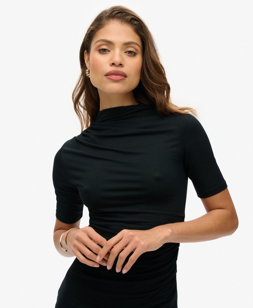 Comfort and confidence go hand in hand with the Short Sleeve Ruched Mini Dress. Crafted from a super soft jersey material with flattering ruching and a form-fitting silhouette, this dress can be effortlessly dressed up or worn casually depending on the occasion.