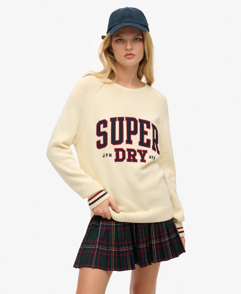 Bring the vintage vibe into your wardrobe this season with our Slouchy Knitted Graphic Crew Jumper. Crafted with a draping raglan sleeve and a large graphic text across the chest, it’s the perfect elevated piece for layering in cooler months.