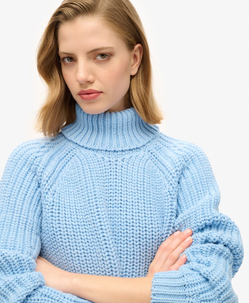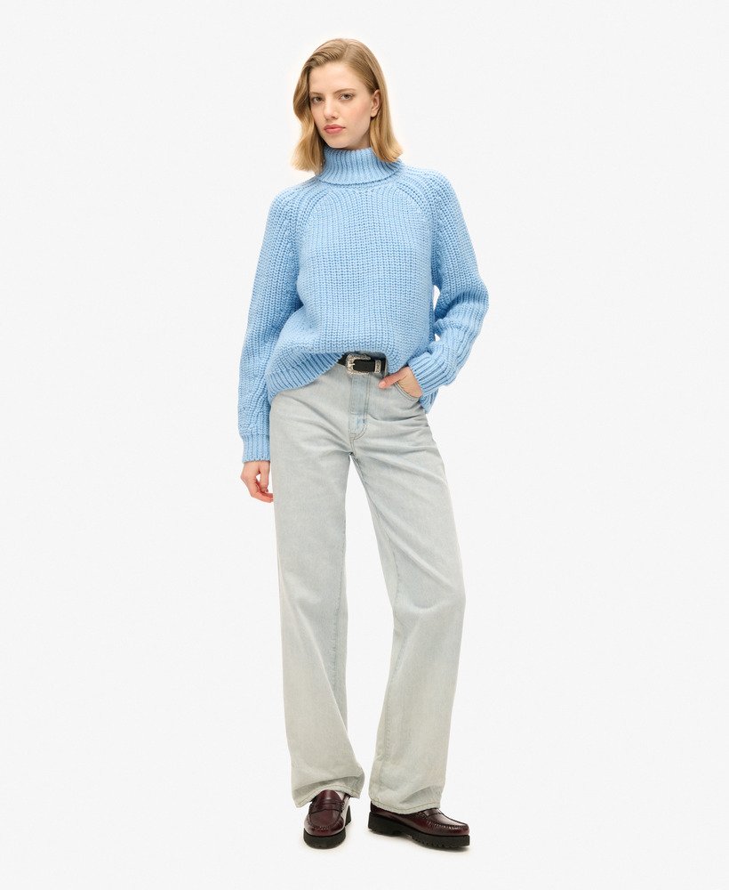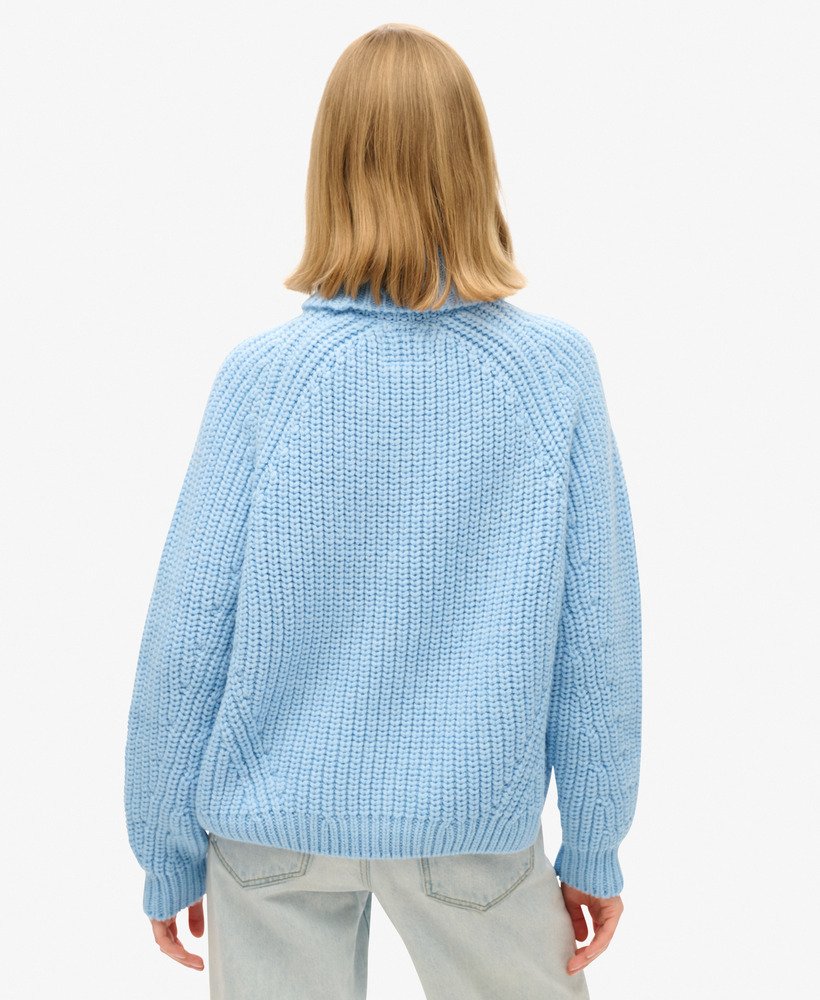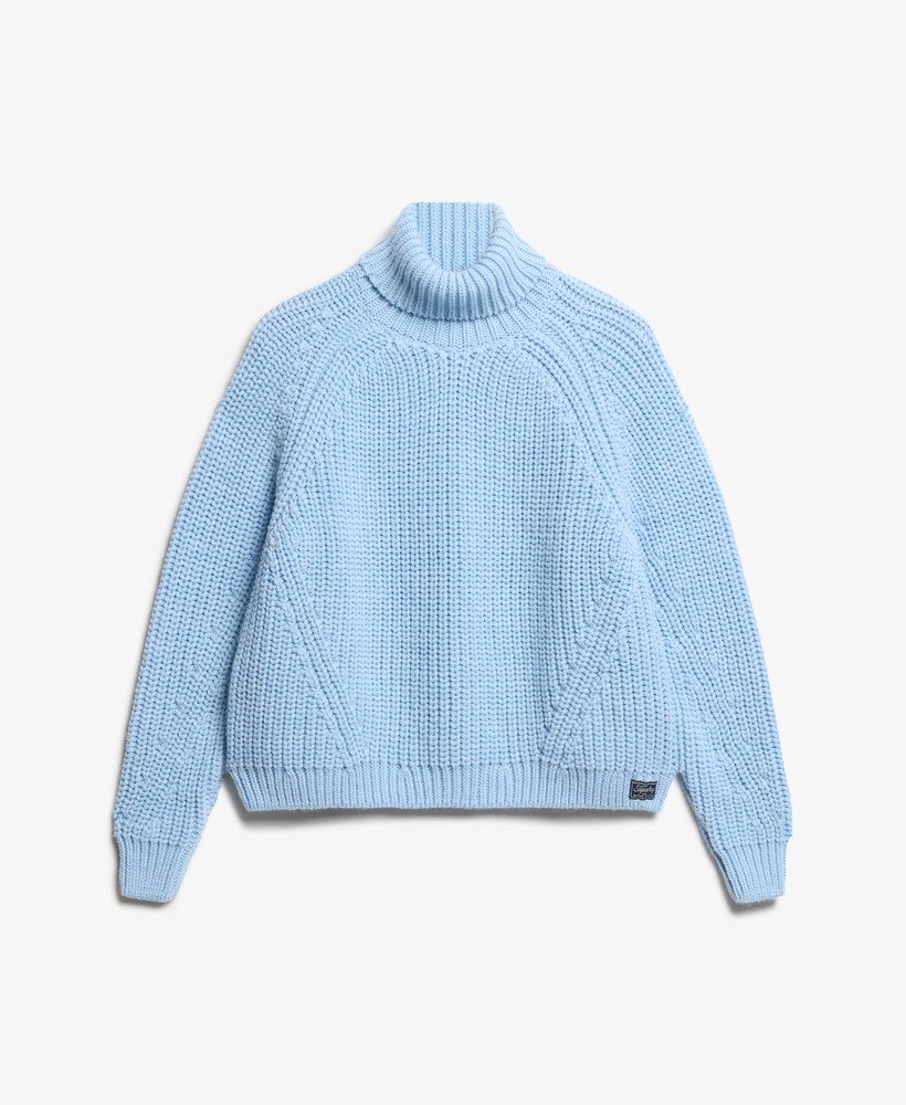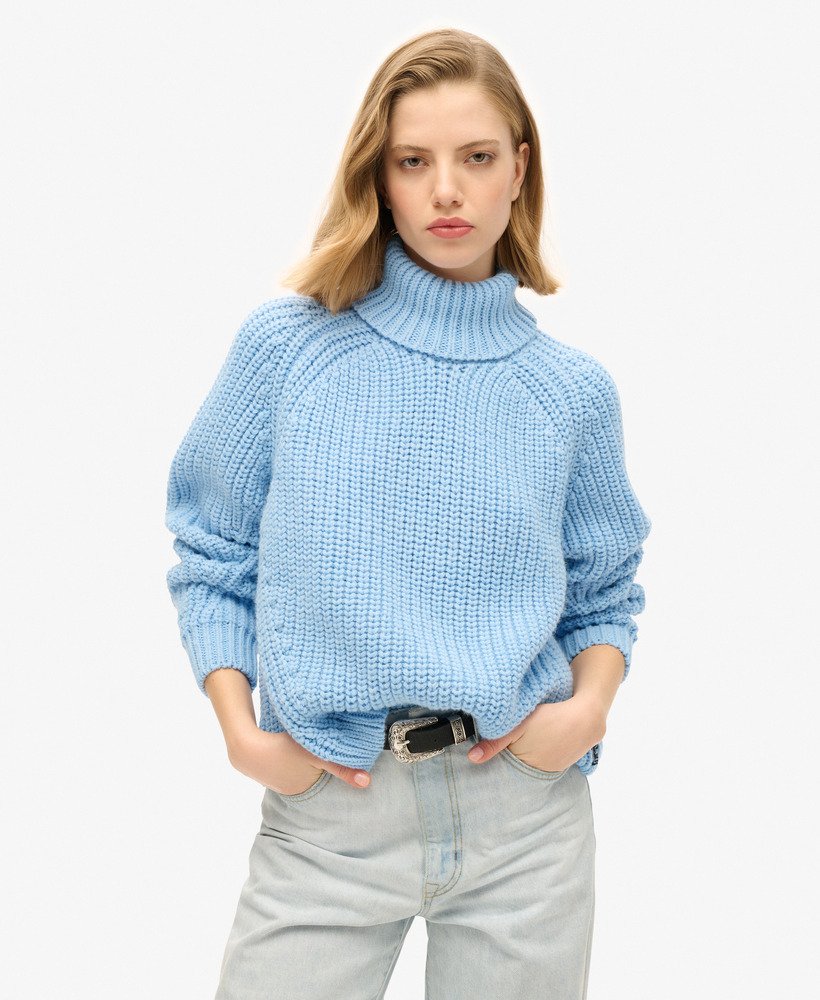 Get cosy as the months get colder with our Slouchy Stitch Roll Neck Knit jumper. Designed with your comfort in mind, this jumper features a roll neck and raglan sleeves that add a touch of authentic style. A chunky knit elevates the understated charm of this piece, whilst the angled rows at the arms and waist cut across the shape to accentuate the silhouette. Layer up in a way that marries comfort and style, whilst staying true to your distinctive look.
