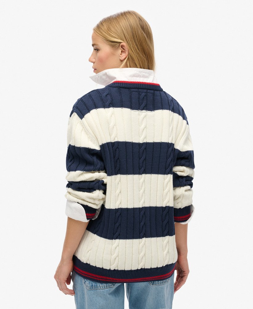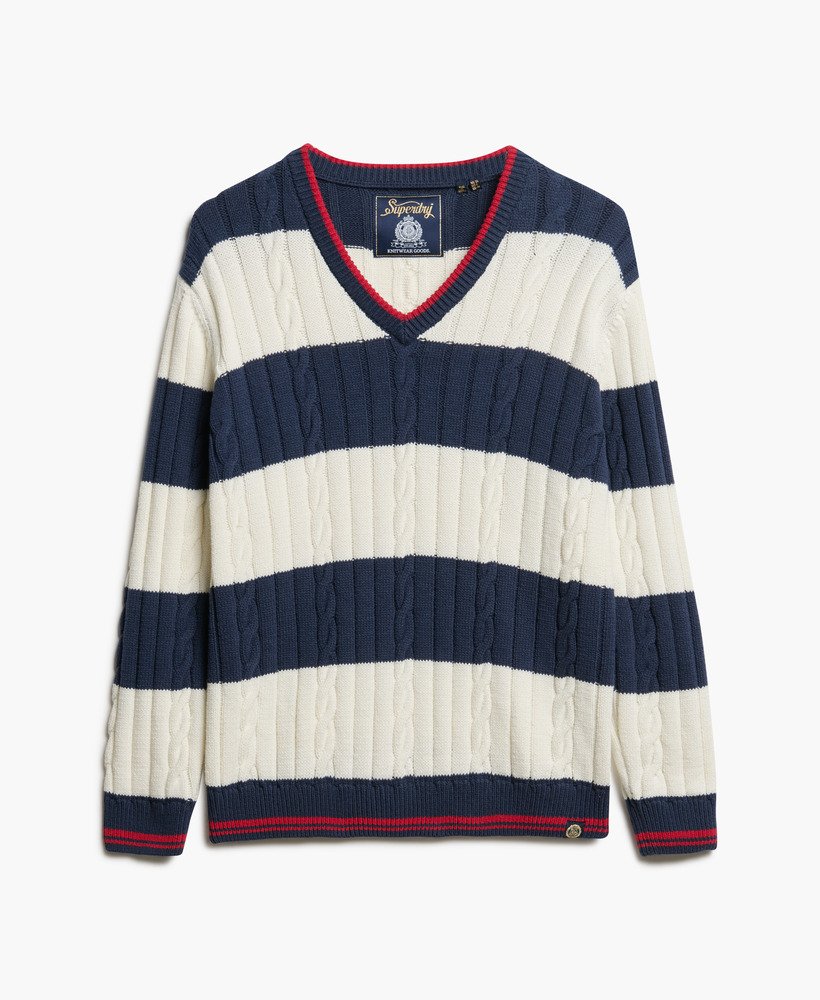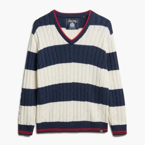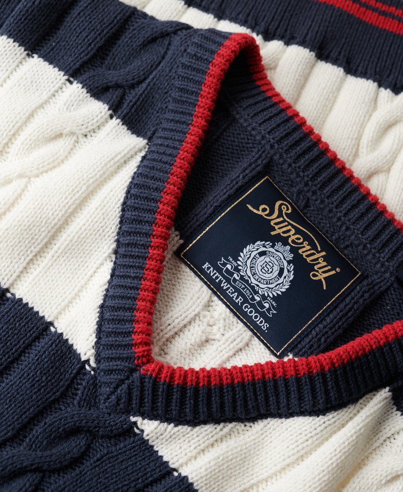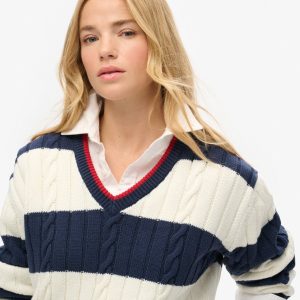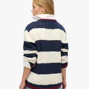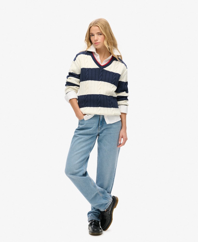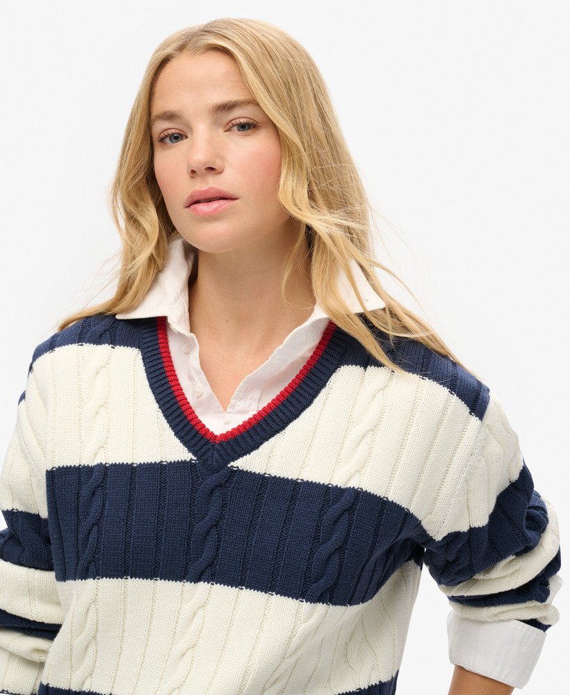 Vintage and heritage, our Stripe Oversized Cable V Neck Jumper is ideal for switching it up throughout the season. Crafted with an oversized style and a v neckline, it’s perfect for layering however you like and pairing whichever way you decide.